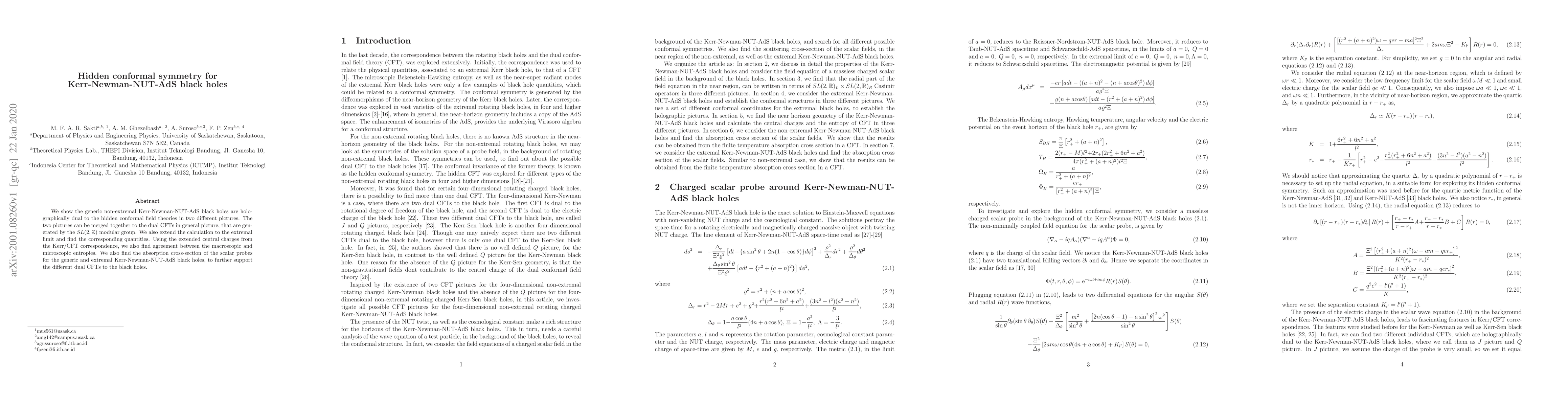 We show the generic non-extremal Kerr-Newman-NUT-AdS black holes are holographically dual to the hidden conformal field theories in two different pictures. The two pictures can be merged together to the dual CFTs in general picture, that are generated by the $SL(2,\mathbb{Z})$ modular group. We also extend the calculation to the extremal limit and find the corresponding quantities. Using the extended central charges from the Kerr/CFT correspondence, we also find agreement between the macroscopic and microscopic entropies. We also find the absorption cross-section of the scalar probes for the generic and extremal Kerr-Newman-NUT-AdS black holes, to further support the different dual CFTs to the black holes.