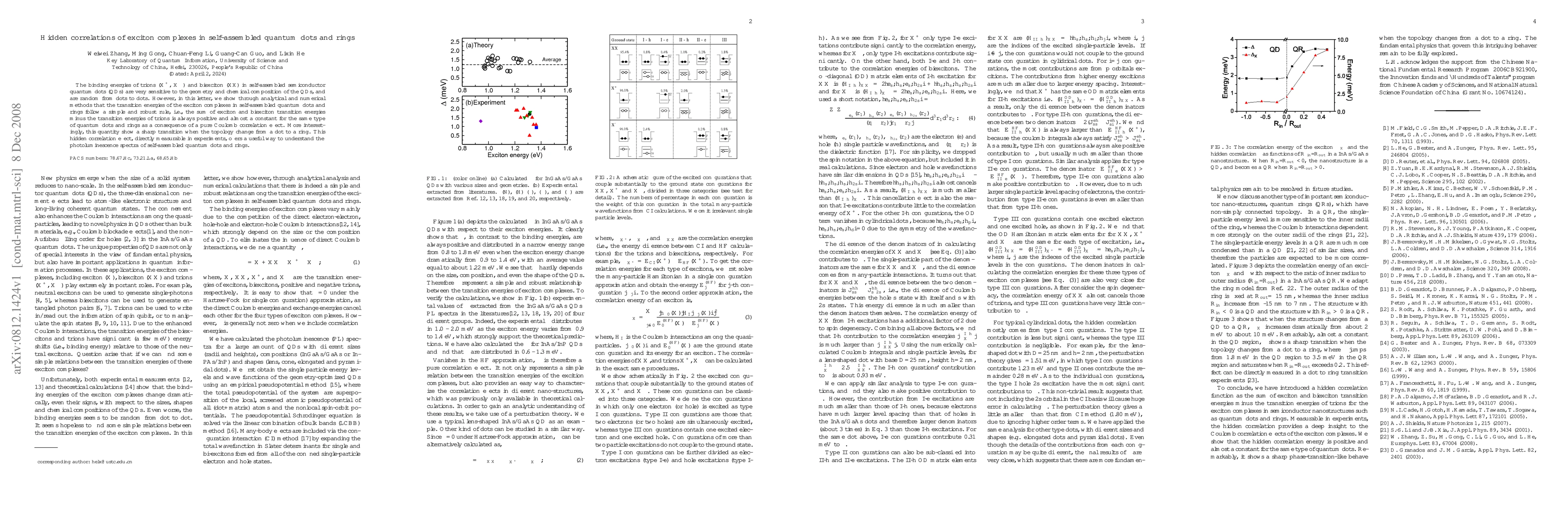 This research reveals a hidden correlation in the transition energies of exciton complexes in self-assembled quantum dots and rings, showing that a specific combination of these energies is a constant, influenced by Coulomb correlations. This correlation effect, observable in photoluminescence spectra, provides insight into the underlying physical properties of these nanostructures.