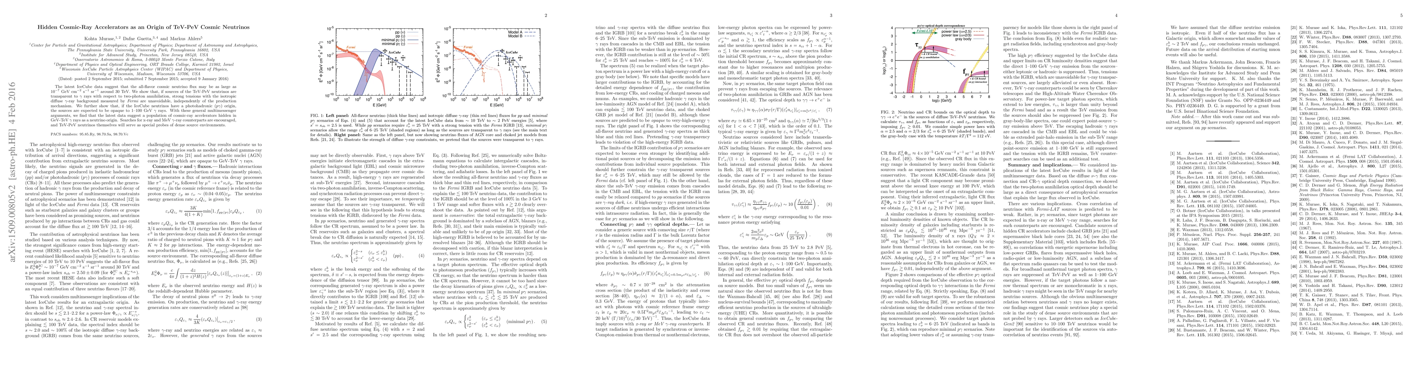 This paper argues that hidden cosmic-ray accelerators, invisible in GeV-TeV gamma rays, are likely sources of TeV-PeV cosmic neutrinos detected by IceCube, as transparent sources would conflict with Fermi's gamma-ray background measurements. The study suggests that neutrino sources should be opaque to 1-100 GeV gamma rays, indicating a photohadronic origin.