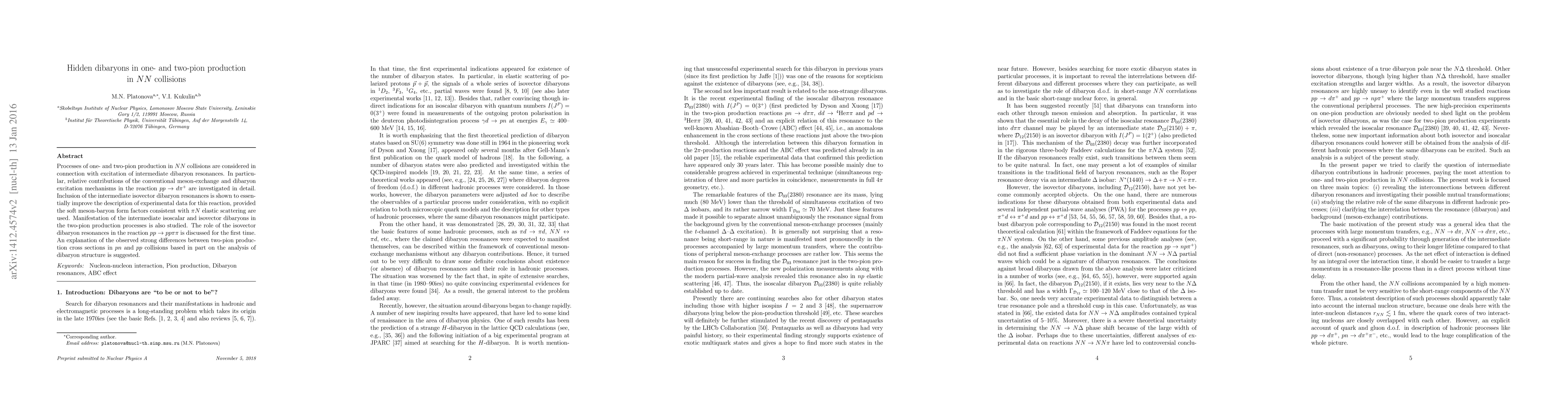 This paper investigates the role of dibaryon resonances in one- and two-pion production during $NN$ collisions, showing that intermediate dibaryon excitations significantly improve the description of experimental data, especially when soft meson-baryon form factors are used. The study also explores the impact of isovector dibaryon resonances in two-pion production processes and suggests an explanation for differences in two-pion production cross sections between $pn$ and $pp$ collisions based on dibaryon structure analysis.