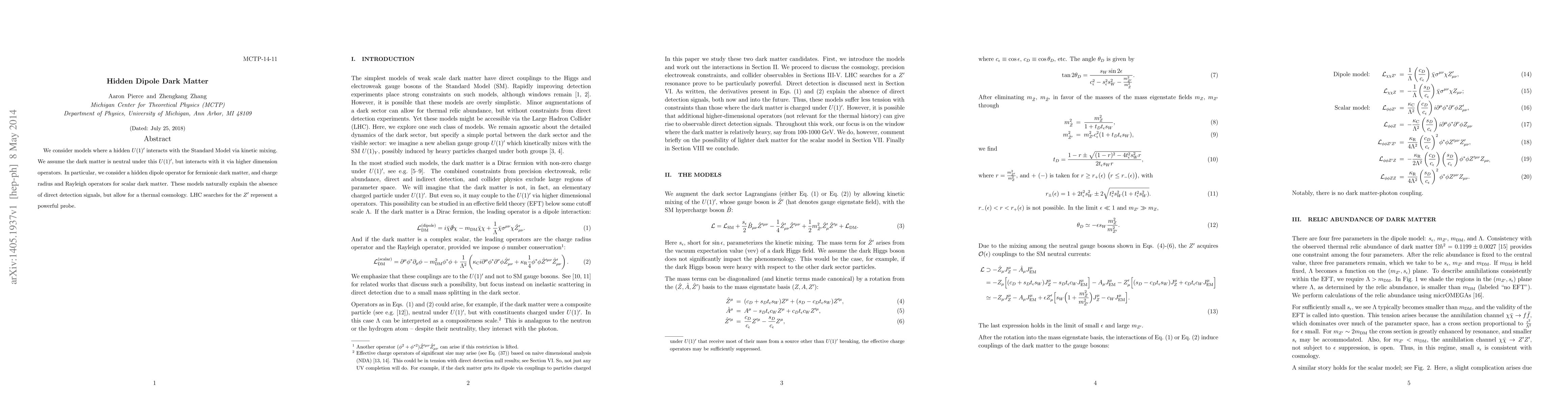 This paper explores dark matter models with a hidden U(1)' gauge symmetry interacting via kinetic mixing, featuring fermionic and scalar dark matter through hidden dipole and other higher-dimension operators. These models evade direct detection but maintain thermal cosmology and are testable via LHC searches for Z' bosons.