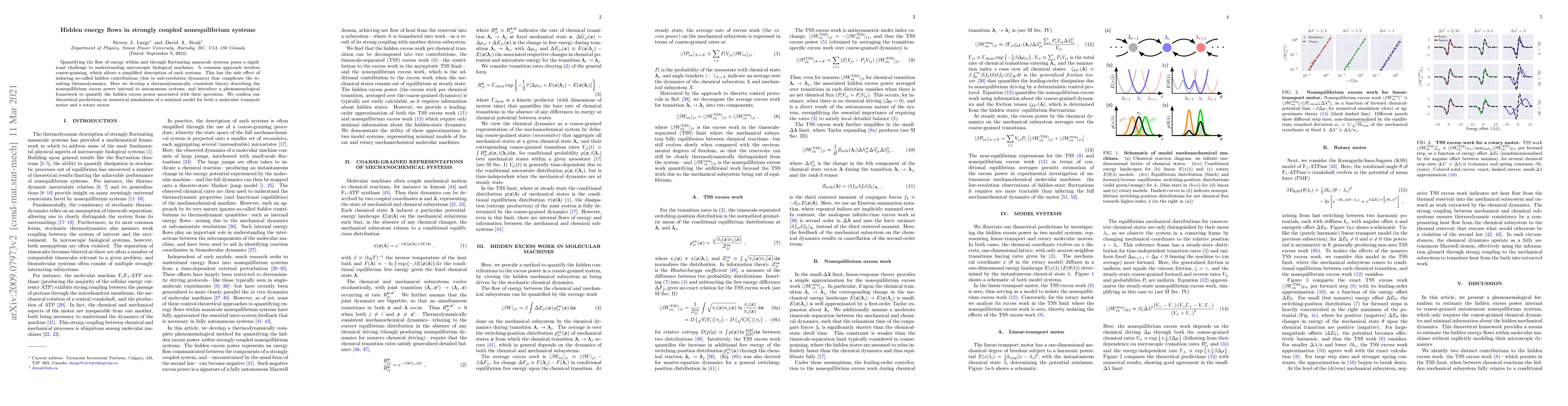 Quantifying the flow of energy within and through fluctuating nanoscale systems poses a significant challenge to understanding microscopic biological machines. A common approach involves coarse-graining, which allows a simplified description of such systems. This has the side effect of inducing so-called hidden contributions (due to sub-resolution dynamics) that complicate the resulting thermodynamics. Here we develop a thermodynamically consistent theory describing the nonequilibrium excess power internal to autonomous systems, and introduce a phenomenological framework to quantify the hidden excess power associated with their operation. We confirm our theoretical predictions in numerical simulations of a minimal model for both a molecular transport motor and a rotary motor.
