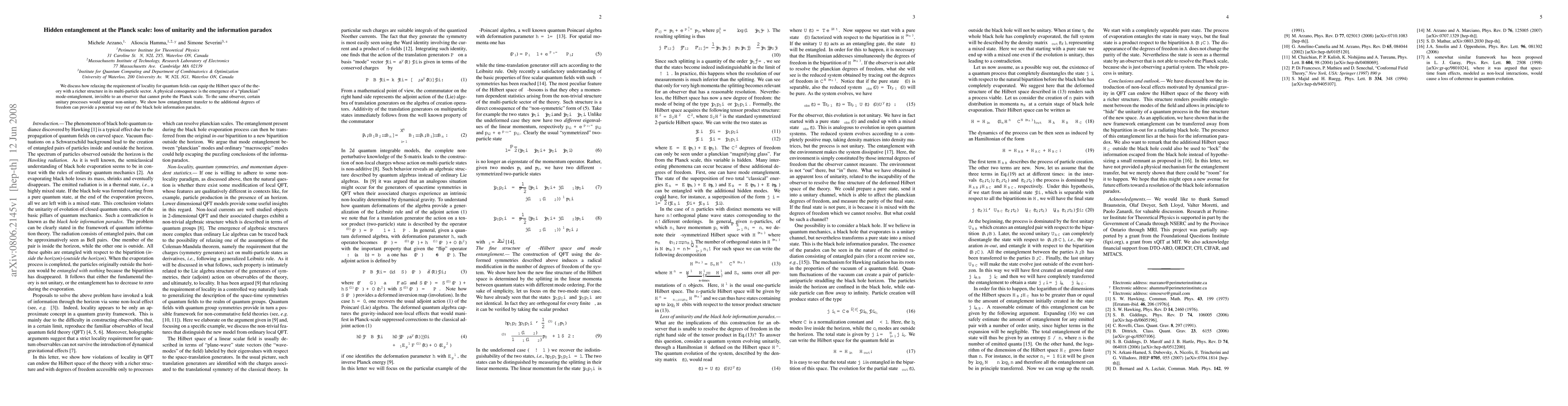 We discuss how relaxing the requirement of locality for quantum fields can equip the Hilbert space of the theory with a richer structure in its multi-particle sector. A physical consequence is the emergence of a "planckian" mode-entanglement, invisible to an observer that cannot probe the Planck scale. To the same observer, certain unitary processes would appear non-unitary. We show how entanglement transfer to the additional degrees of freedom can provide a potential way out of the black hole information paradox.