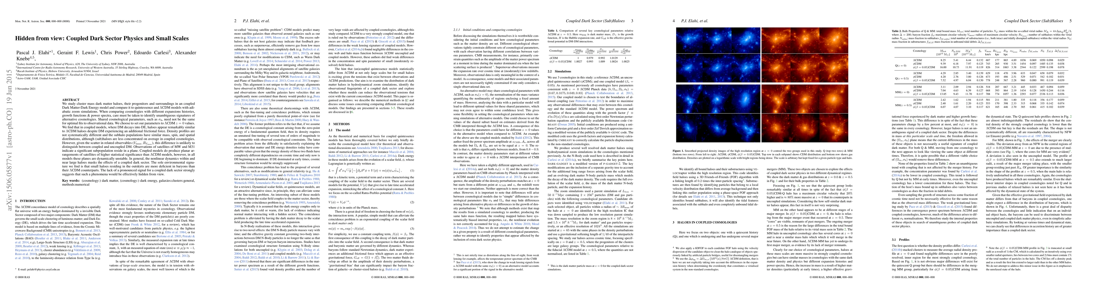 We study cluster mass dark matter haloes, their progenitors and surroundings in an coupled Dark Matter-Dark Energy model and compare it to quintessence and $\Lambda$CDM models with adiabatic zoom simulations. When comparing cosmologies with different expansions histories, growth functions & power spectra, care must be taken to identify unambiguous signatures of alternative cosmologies. Shared cosmological parameters, such as $\sigma_8$, need not be the same for optimal fits to observational data. We choose to set our parameters to $\Lambda$CDM $z=0$ values. We find that in coupled models, where DM decays into DE, haloes appear remarkably similar to $\Lambda$CDM haloes despite DM experiencing an additional frictional force. Density profiles are not systematically different and the subhalo populations have similar mass, spin, and spatial distributions, although (sub)haloes are less concentrated on average in coupled cosmologies. However, given the scatter in related observables ($V_{\rm max},R_{V_{\rm max}}$), this difference is unlikely to distinguish between coupled and uncoupled DM. Observations of satellites of MW and M31 indicate a significant subpopulation reside in a plane. Coupled models do produce planar arrangements of satellites of higher statistical significance than $\Lambda$CDM models, however, in all models these planes are dynamically unstable. In general, the nonlinear dynamics within and near large haloes masks the effects of a coupled dark sector. The sole environmental signature we find is that small haloes residing in the outskirts are more deficient in baryons than their $\Lambda$CDM counterparts. The lack of a pronounced signal for a coupled dark sector strongly suggests that such a phenomena would be effectively hidden from view.