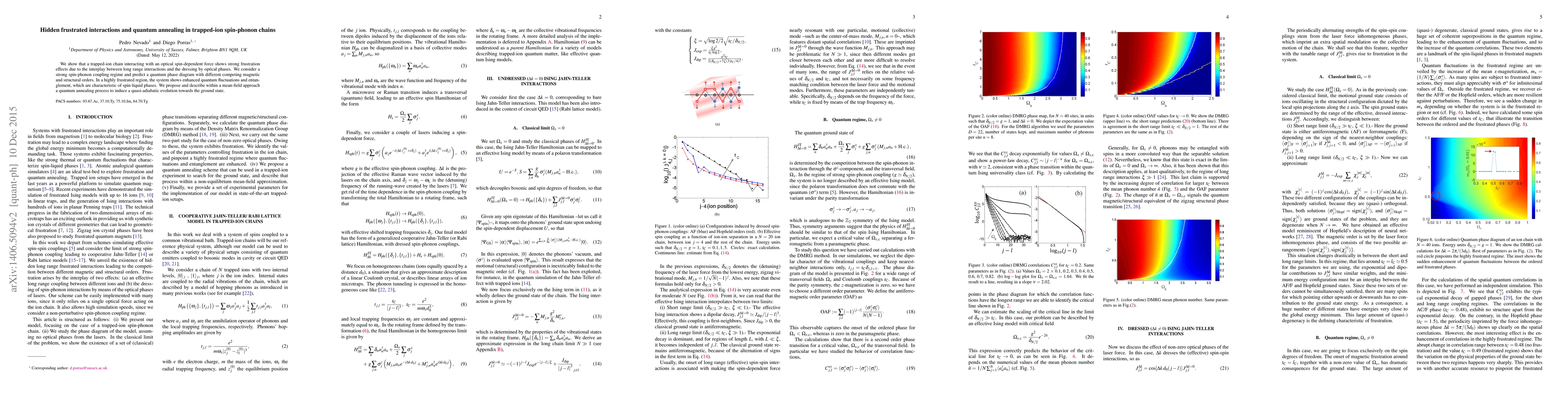 Researchers find strong frustration effects in trapped ion chains due to interplay between long-range interactions and optical phases, leading to enhanced quantum fluctuations and entanglement. They propose a quantum annealing process to induce quasi-adiabatic evolution towards the ground state.