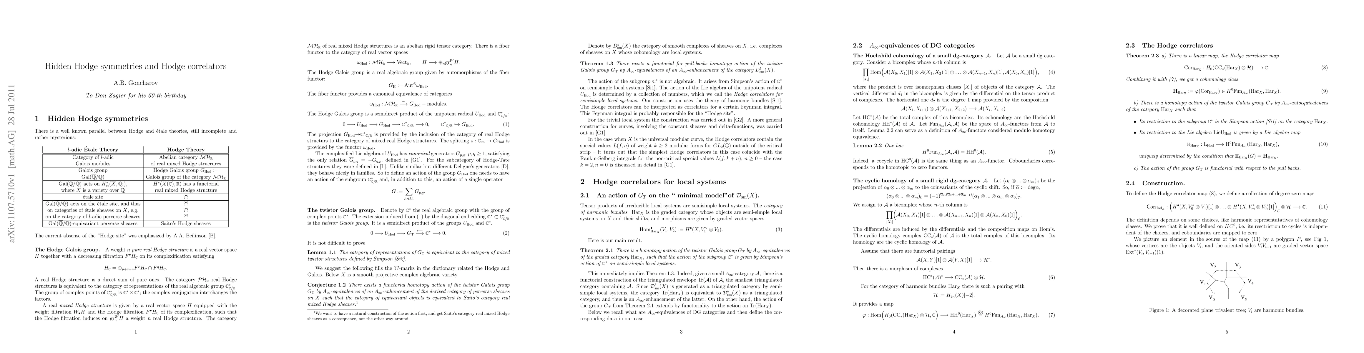 This paper explores the Hodge Galois group and its subgroup, the twistor Galois group, defining their actions on the derived category of sheaves on a compact Kähler manifold. It introduces Hodge correlators as a specific action, linking them to Feynman integrals, and suggests a broader application to D-modules.