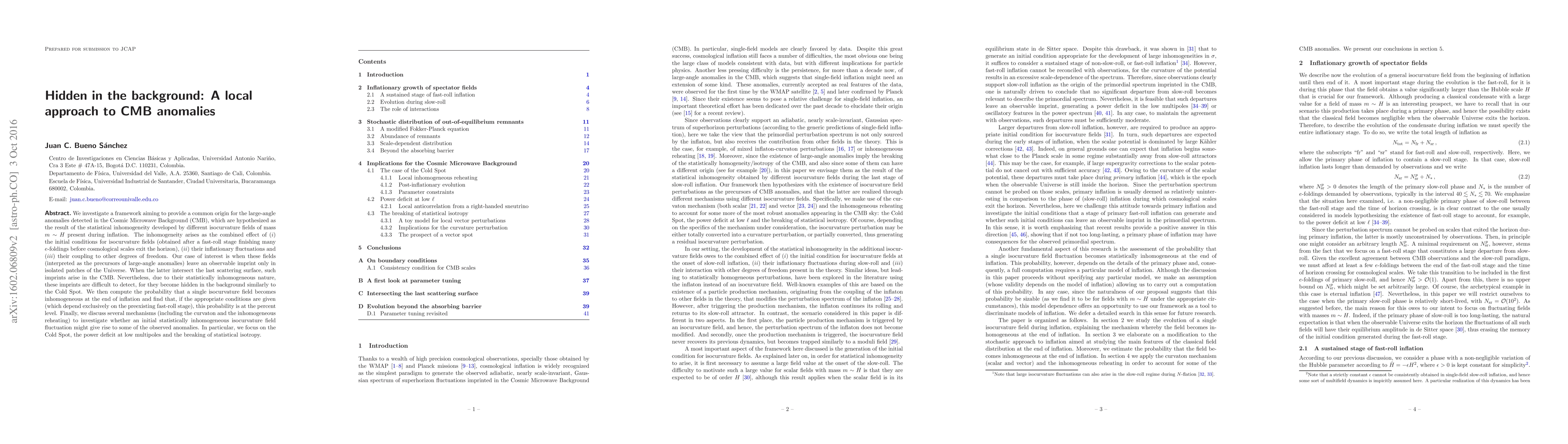 We investigate a framework aiming to provide a common origin for the large-angle anomalies detected in the Cosmic Microwave Background (CMB), which are hypothesized as the result of the statistical inhomogeneity developed by different isocurvature fields of mass $m\sim H$ present during inflation. The inhomogeneity arises as the combined effect of $(i)$ the initial conditions for isocurvature fields (obtained after a fast-roll stage finishing many $e$-foldings before cosmological scales exit the horizon), $(ii)$ their inflationary fluctuations and $(iii)$ their coupling to other degrees of freedom. Our case of interest is when these fields (interpreted as the precursors of large-angle anomalies) leave an observable imprint only in isolated patches of the Universe. When the latter intersect the last scattering surface, such imprints arise in the CMB. Nevertheless, due to their statistically inhomogeneous nature, these imprints are difficult to detect, for they become hidden in the background similarly to the Cold Spot. We then compute the probability that a single isocurvature field becomes inhomogeneous at the end of inflation and find that, if the appropriate conditions are given (which depend exclusively on the preexisting fast-roll stage), this probability is at the percent level. Finally, we discuss several mechanisms (including the curvaton and the inhomogeneous reheating) to investigate whether an initial statistically inhomogeneous isocurvature field fluctuation might give rise to some of the observed anomalies. In particular, we focus on the Cold Spot, the power deficit at low multipoles and the breaking of statistical isotropy.