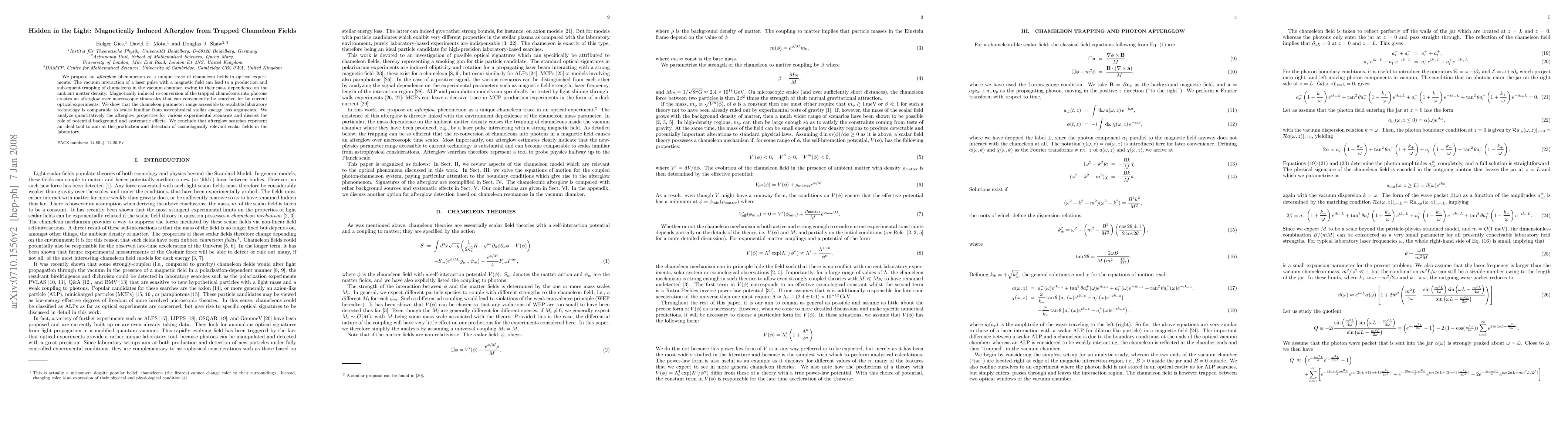We propose an afterglow phenomenon as a unique trace of chameleon fields in optical experiments. The vacuum interaction of a laser pulse with a magnetic field can lead to a production and subsequent trapping of chameleons in the vacuum chamber, owing to their mass dependence on the ambient matter density. Magnetically induced re-conversion of the trapped chameleons into photons creates an afterglow over macroscopic timescales that can conveniently be searched for by current optical experiments. We show that the chameleon parameter range accessible to available laboratory technology is comparable to scales familiar from astrophysical stellar energy loss arguments. We analyze quantitatively the afterglow properties for various experimental scenarios and discuss the role of potential background and systematic effects. We conclude that afterglow searches represent an ideal tool to aim at the production and detection of cosmologically relevant scalar fields in the laboratory.