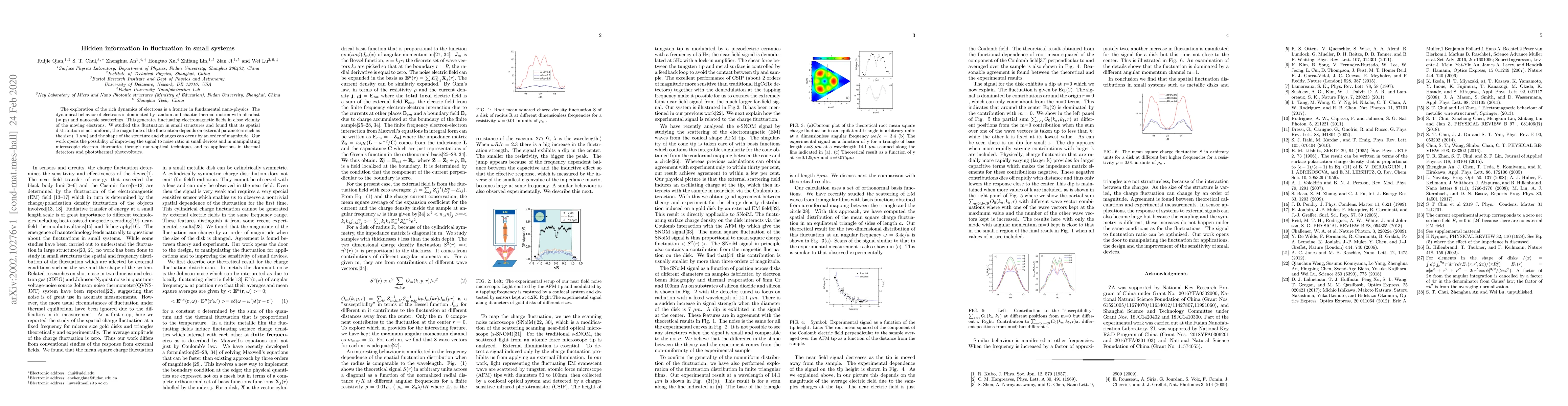 The exploration of the rich dynamics of electrons is a frontier in fundamental nano-physics. The dynamical behavior of electrons is dominated by random and chaotic thermal motion with ultrafast ($\approx$ ps) and nanoscale scatterings. This generates fluctuating electromagnetic fields in close vicinity of the moving electrons. W studied this fluctuation in small structures and found that its spatial distribution is not uniform, the magnitude of the fluctuation depends on external parameters such as the size ( ~1 $\mu m$) and the shape of the structure and changes can occur by an order of magnitude. Our work opens the possibility of improving the signal to noise ratio in small devices and in manipulating microscopic electron kinematics through nano-optical techniques and to applications in thermal detectors and photothermal photovoltaics.