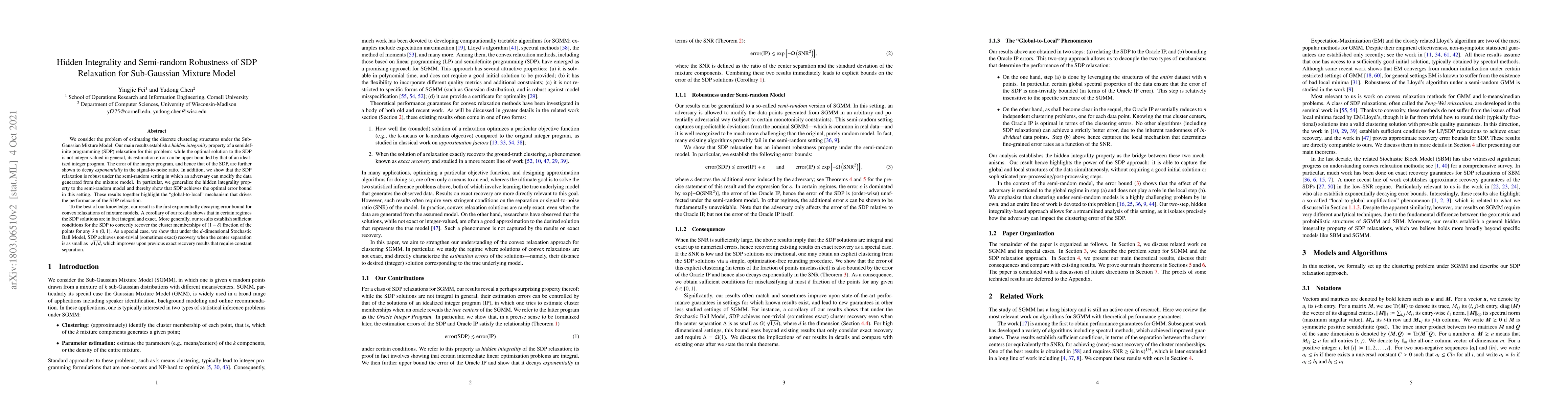 This research paper establishes that a semidefinite programming (SDP) relaxation for estimating discrete clustering structures under the Sub-Gaussian Mixture Model achieves an exponentially decaying error bound in signal-to-noise ratio, and is robust in semi-random settings.