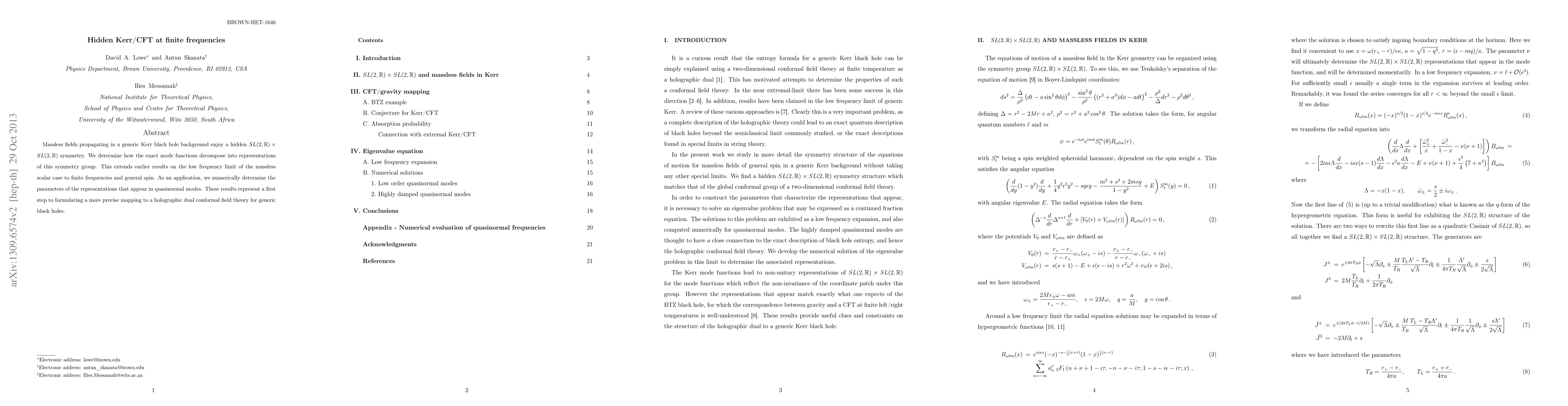 Massless fields propagating in a generic Kerr black hole background enjoy a hidden SL(2,R)xSL(2,R) symmetry. We determine how the exact mode functions decompose into representations of this symmetry group. This extends earlier results on the low frequency limit of the massless scalar case to finite frequencies and general spin. As an application, we numerically determine the parameters of the representations that appear in quasinormal modes. These results represent a first step to formulating a more precise mapping to a holographic dual conformal field theory for generic black holes.