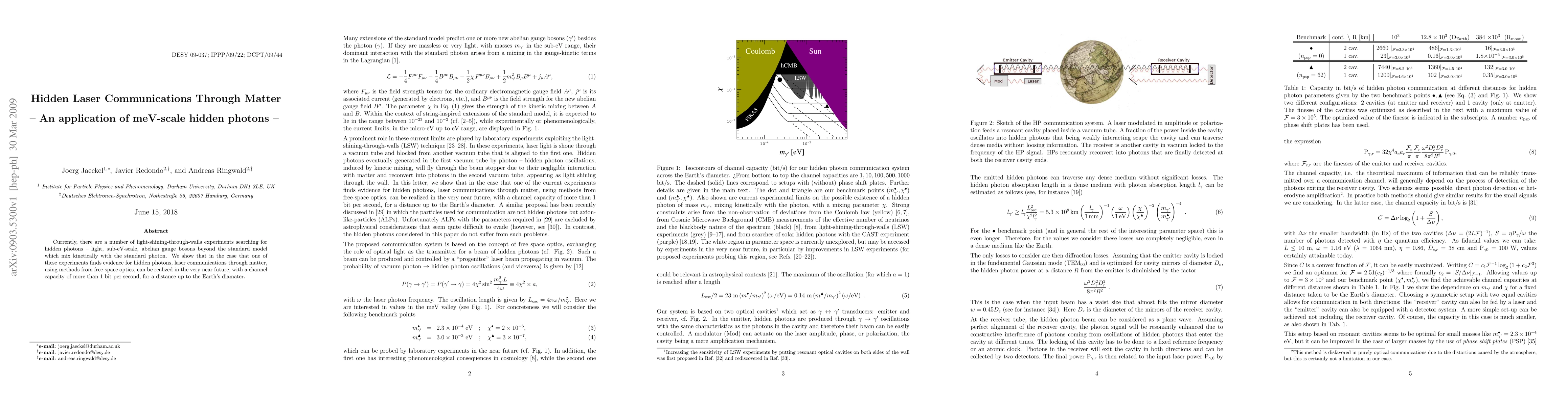 Currently, there are a number of light-shining-through-walls experiments searching for hidden photons -- light, sub-eV-scale, abelian gauge bosons beyond the standard model which mix kinetically with the standard photon. We show that in the case that one of these experiments finds evidence for hidden photons, laser communications through matter, using methods from free-space optics, can be realized in the very near future, with a channel capacity of more than 1 bit per second, for a distance up to the Earth's diamater.