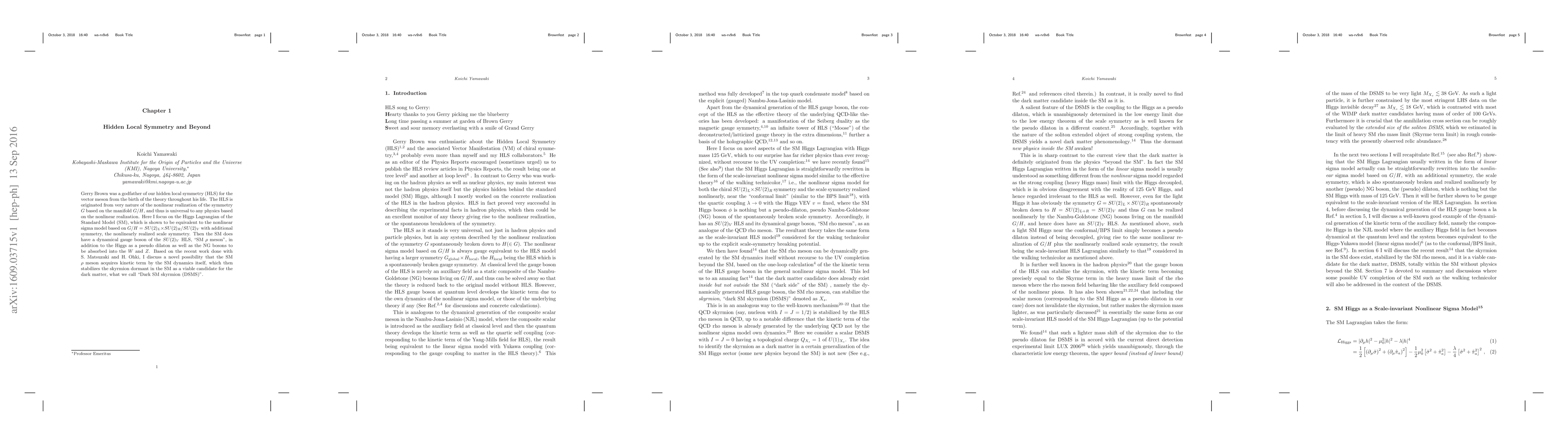Gerry Brown was a godfather of our hidden local symmetry (HLS) for the vector meson from the birth of the theory throughout his life. The HLS is originated from very nature of the nonlinear realization of the symmetry G based on the manifold G/H, and thus is universal to any physics based on the nonlinear realization. Here I focus on the Higgs Lagrangian of the Standard Model (SM), which is shown to be equivalent to the nonlinear sigma model based on G/H= SU(2)_L x SU(2)_R/SU(2)_V with additional symmetry, the nonlinearly realized scale symmetry. Then the SM does have a dynamical gauge boson of the SU(2)_V HLS, "SM rho meson", in addition to the Higgs as a pseudo dilaton as well as the NG bosons to be absorbed into the W and Z. Based on the recent work done with S. Matsuzaki and H. Ohki, I discuss a novel possibility that the SM rho meson acquires kinetic term by the SM dynamics itself, which then stabilizes the skyrmion dormant in the SM as a viable candidate for the dark matter, what we call "Dark SM skyrmion (DSMS)".