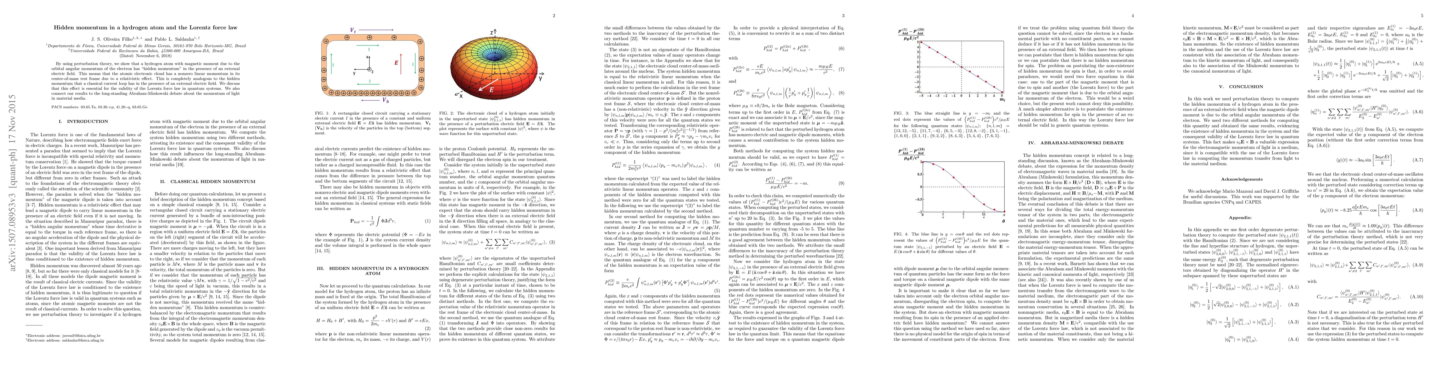 This paper demonstrates that a hydrogen atom exhibits "hidden momentum" due to relativistic effects when subjected to an external electric field, analogous to classical current loops. This finding supports the Lorentz force law in quantum systems and relates to the ongoing Abraham-Minkowski debate on light momentum in media.