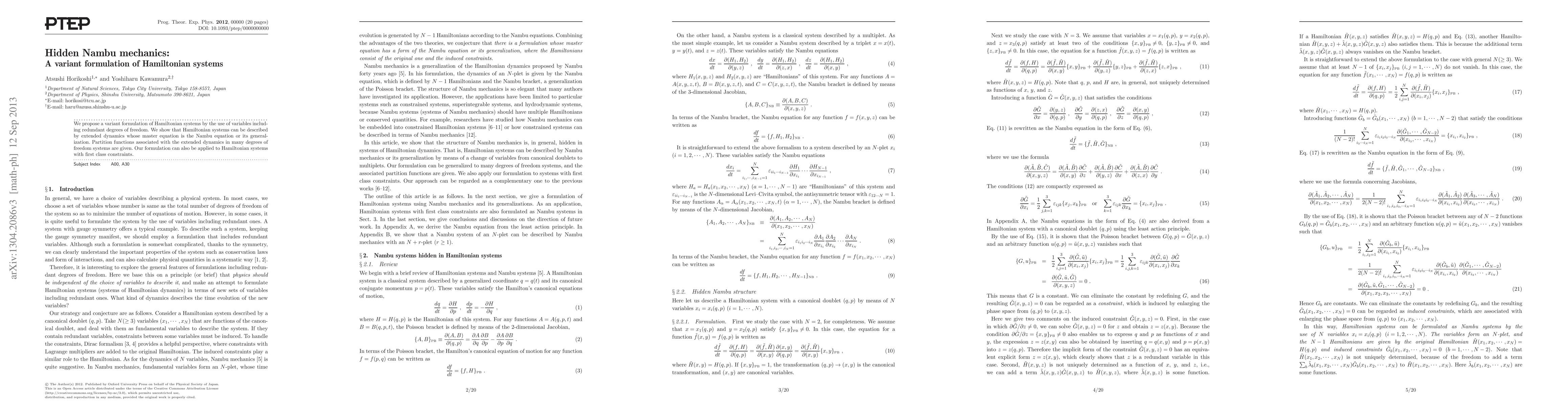 We propose a variant formulation of Hamiltonian systems by the use of variables including redundant degrees of freedom. We show that Hamiltonian systems can be described by extended dynamics whose master equation is the Nambu equation or its generalization. Partition functions associated with the extended dynamics in many degrees of freedom systems are given. Our formulation can also be applied to Hamiltonian systems with first class constraints.