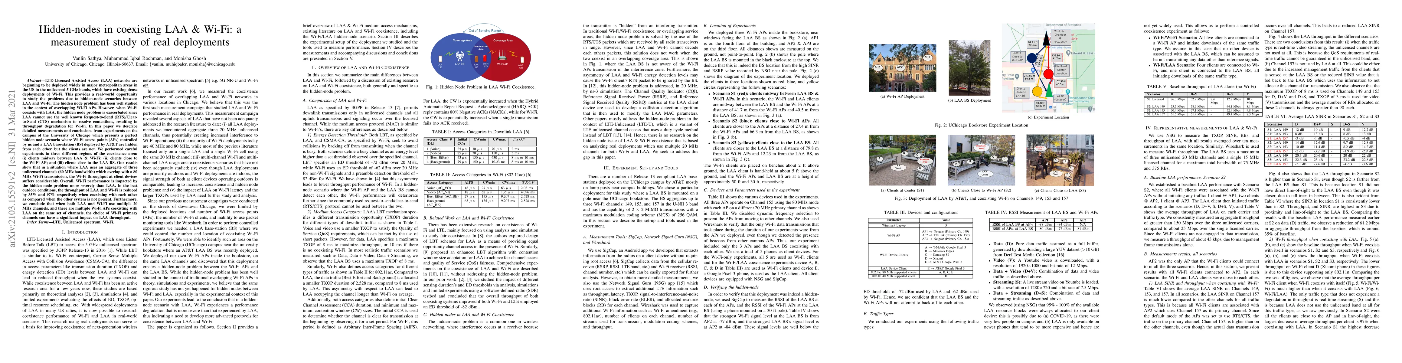 This paper investigates the hidden node problem in coexisting LTE-LAA and Wi-Fi networks through real-world measurements on the University of Chicago campus. The study finds that LAA's inability to use RTS/CTS mechanisms exacerbates Wi-Fi throughput degradation, especially when multiple Wi-Fi access points share channels with LAA, leading to a 97% reduction in Wi-Fi performance.