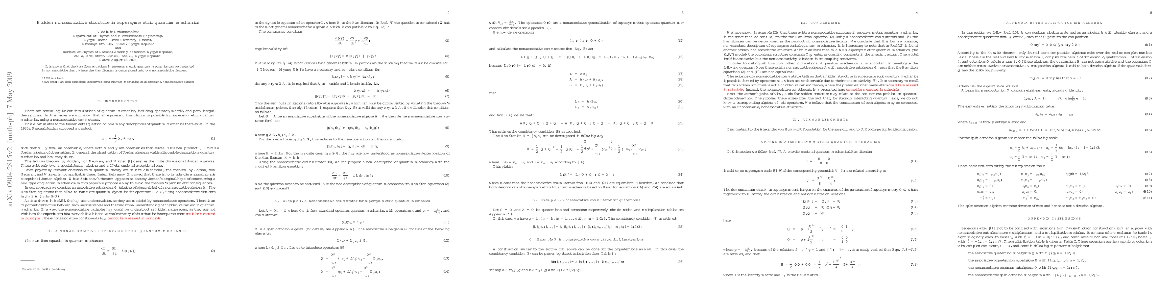 Summary: This paper reveals a hidden nonassociative structure in supersymmetric quantum mechanics, demonstrating that the Hamilton equations can be reformulated with the Hamiltonian decomposed into two nonassociative factors. This provides new insights into the underlying mathematical framework of the theory.