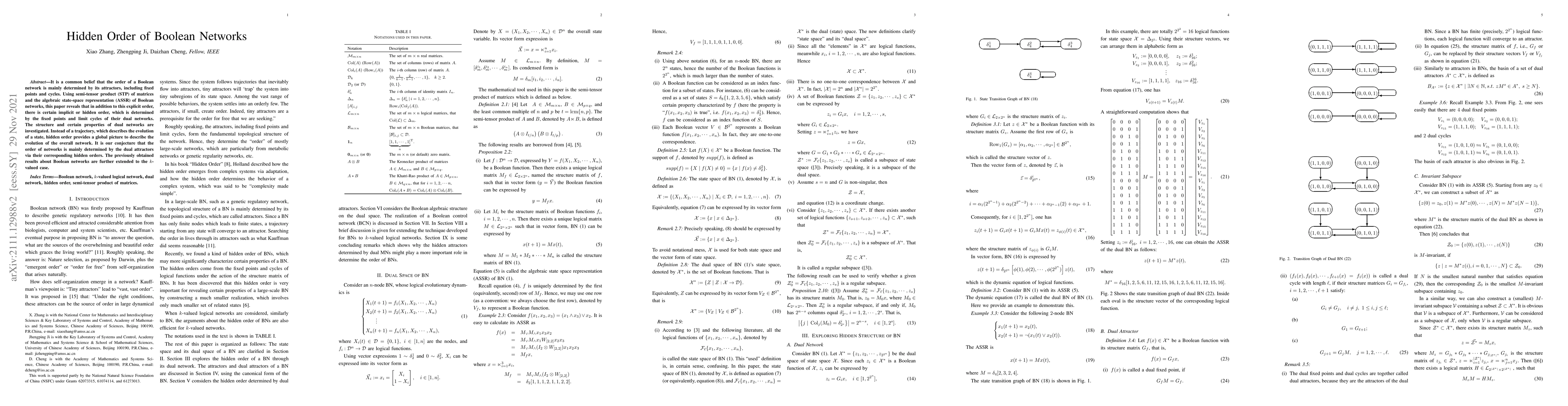 This paper uncovers an implicit or hidden order in Boolean networks, determined by the fixed points and limit cycles of their dual networks, using semi-tensor product and algebraic state-space representation. It proposes that this hidden order, rather than just explicit order, primarily governs the network's evolution.