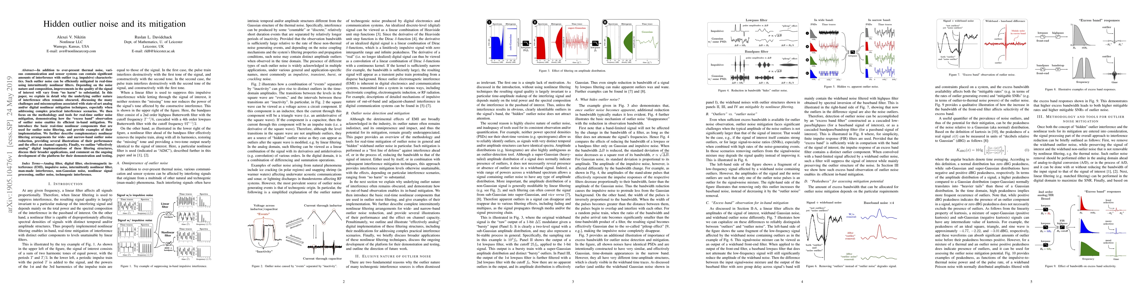 This paper discusses the challenges of mitigating outlier noise in communication and sensor systems, proposing real-time nonlinear filtering techniques to address interference with impulsive characteristics. It highlights the obscured nature of such outlier noise and provides detailed methodologies and tools for its efficient mitigation, demonstrating improvements in signal quality and channel capacity.