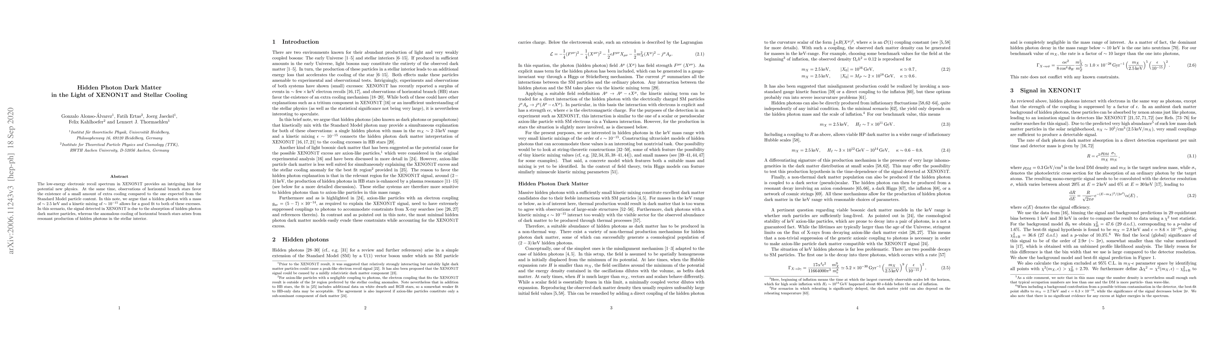The low-energy electronic recoil spectrum in XENON1T provides an intriguing hint for potential new physics. At the same time, observations of horizontal branch stars favor the existence of a small amount of extra cooling compared to the one expected from the Standard Model particle content. In this note, we argue that a hidden photon with a mass of $\sim 2.5$ keV and a kinetic mixing of $\sim 10^{-15}$ allows for a good fit to both of these excesses. In this scenario, the signal detected in XENON1T is due to the absorption of hidden photon dark matter particles, whereas the anomalous cooling of horizontal branch stars arises from resonant production of hidden photons in the stellar interior.