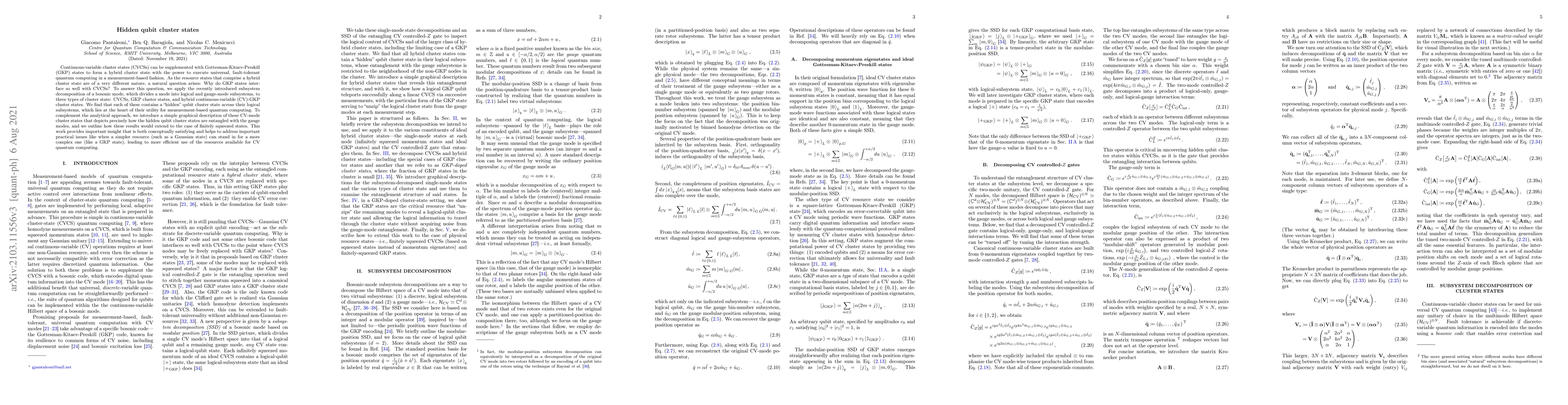 Researchers discover hidden qubit cluster states in hybrid CV-GKP cluster states, enabling universal, fault-tolerant quantum computing in measurement-based fashion, offering insight into resource utilization for CV quantum computing.