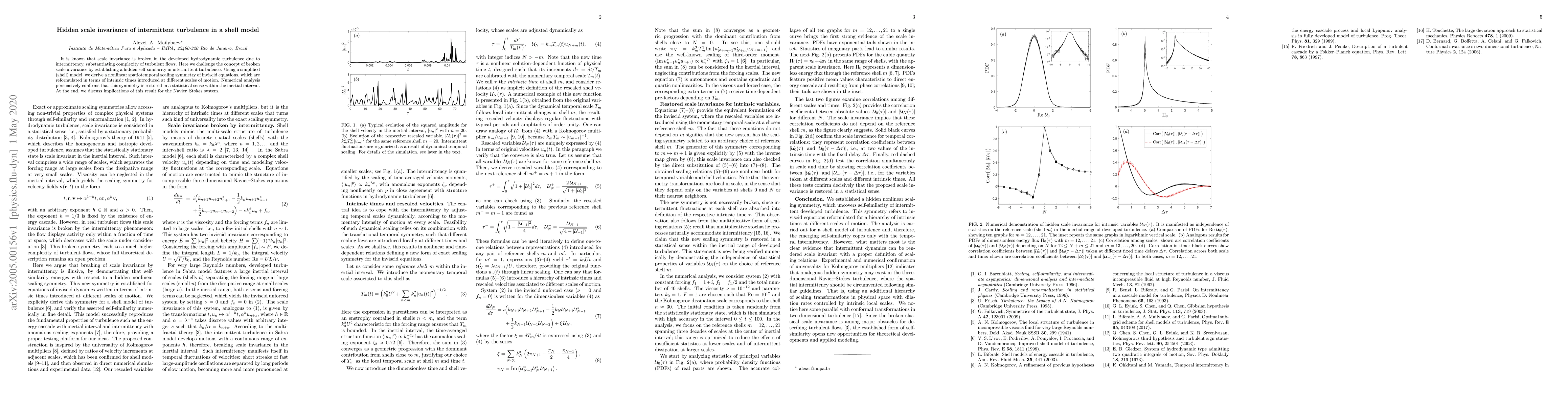 This paper reveals hidden scale invariance in intermittent turbulence through a shell model, demonstrating a nonlinear spatiotemporal scaling symmetry that restores statistical self-similarity within the inertial interval, challenging the notion of broken scale invariance in turbulent flows. The findings have significant implications for understanding the Navier-Stokes system.