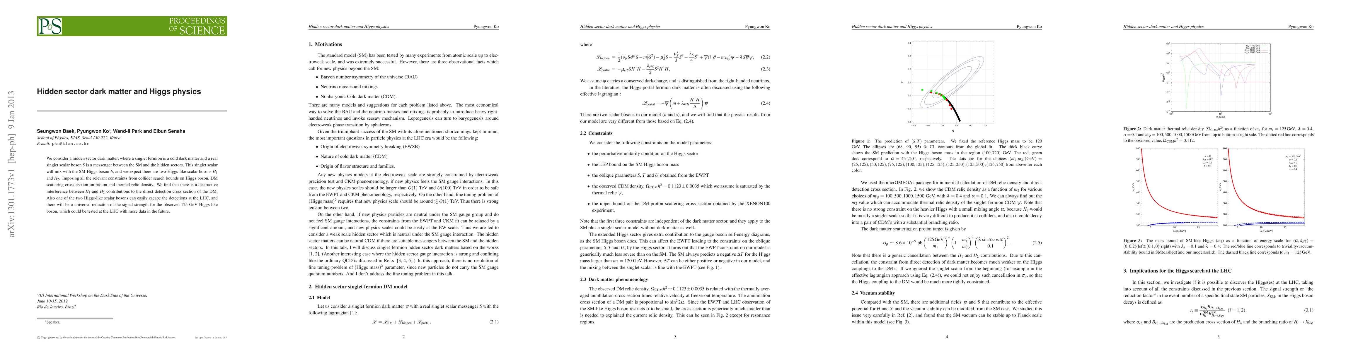 This paper explores a hidden sector dark matter model featuring a singlet fermion as cold dark matter and a real singlet scalar boson $S$ mediating interactions with the Standard Model. It predicts two Higgs-like scalars $H_1$ and $H_2$ that mix with the SM Higgs, leading to a destructive interference in dark matter detection and potential LHC detection challenges.
