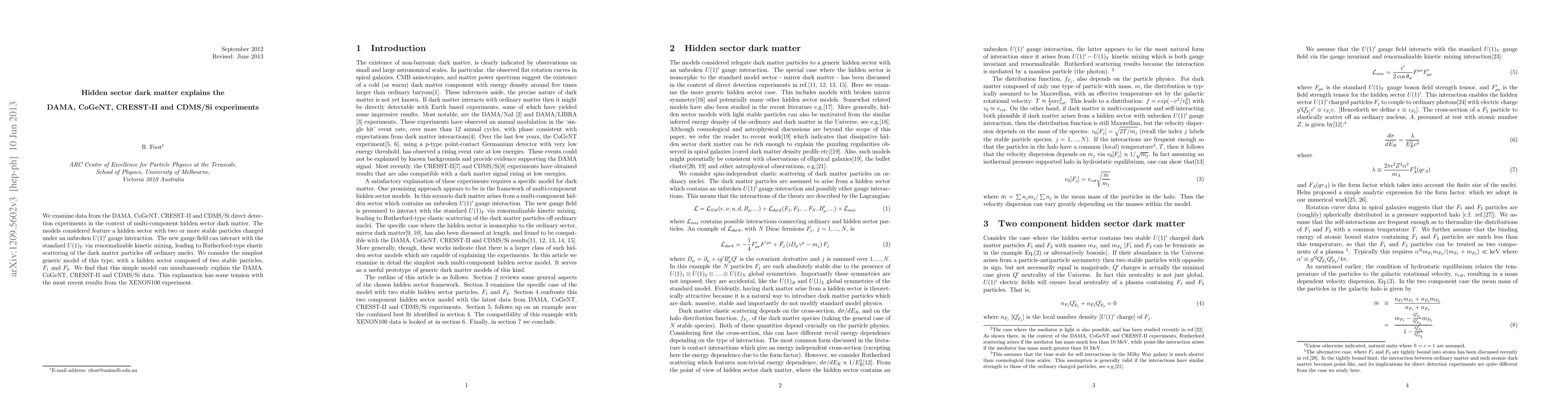 This paper explores multi-component hidden sector dark matter models to explain the results from DAMA, CoGeNT, CRESST-II, and CDMS/Si direct detection experiments, finding a simple model with two stable particles can fit the data, though it conflicts with recent XENON100 results.