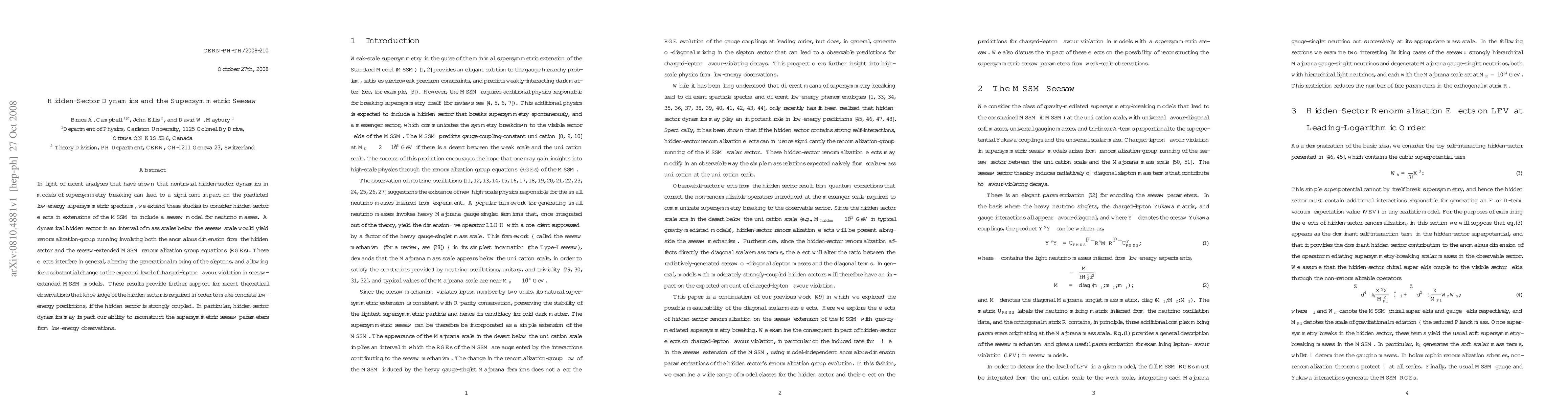 This paper investigates the influence of hidden-sector dynamics on the supersymmetric seesaw model, showing that hidden-sector effects can significantly alter the low-energy supersymmetric spectrum and charged-lepton flavour violation, emphasizing the necessity of understanding the hidden sector for accurate predictions.