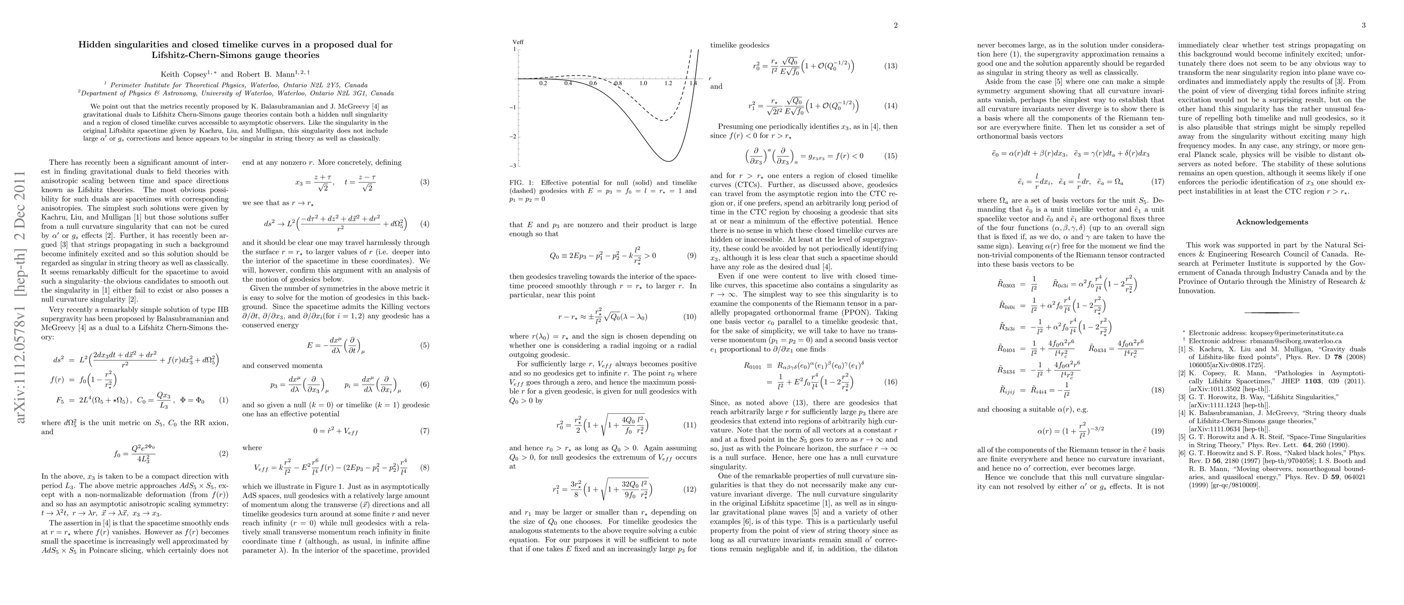 We point out that the metrics recently proposed by K. Balasubramanian and J. McGreevy \cite{BalaMcGreevyLifshitz} as gravitational duals to Lifshitz Chern-Simons gauge theories contain both a hidden null singularity and a region of closed timelike curves accessible to asymptotic observers. Like the singularity in the original Liftshitz spacetime given by Kachru, Liu, and Mulligan, this singularity does not include large $\alpha'$ or $g_s$ corrections and hence appears to be singular in string theory as well as classically.