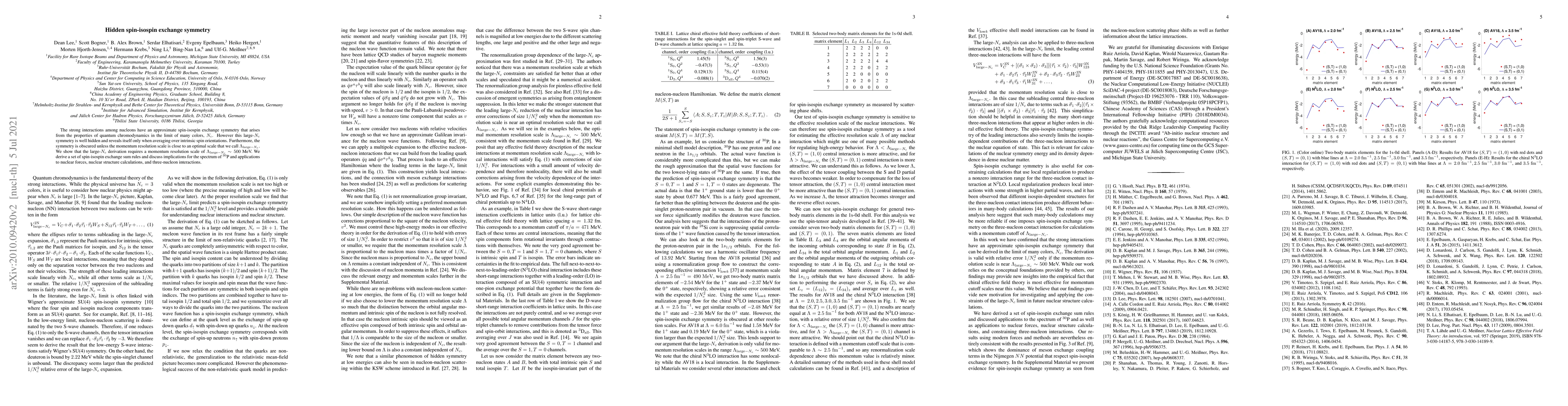 The strong interactions among nucleons have an approximate spin-isospin exchange symmetry that arises from the properties of quantum chromodynamics in the limit of many colors, $N_c$. However this large-$N_c$ symmetry is well hidden and reveals itself only when averaging over intrinsic spin orientations. Furthermore, the symmetry is obscured unless the momentum resolution scale is close to an optimal scale that we call $\Lambda_{{\rm large-}N_c}$. We show that the large-$N_c$ derivation requires a momentum resolution scale of $\Lambda_{{\rm large-}N_c} \sim 500$ MeV. We derive a set of spin-isospin exchange sum rules and discuss implications for the spectrum of $^{30}$P and applications to nuclear forces, nuclear structure calculations, and three-nucleon interactions.