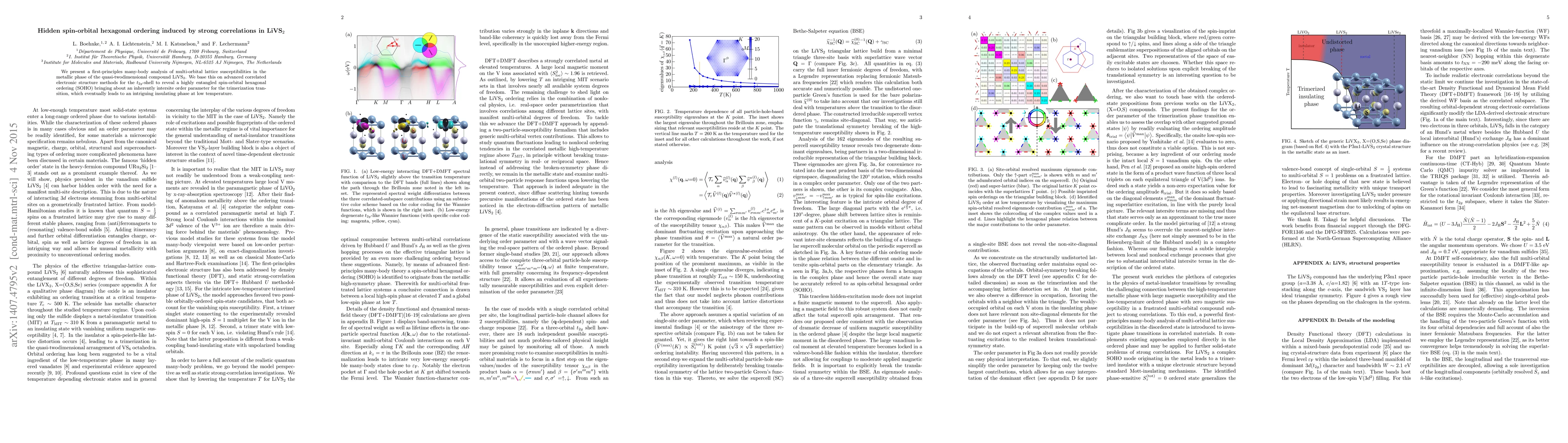 We present a first-principles many-body analysis of multi-orbital lattice susceptibilities in the metallic phase of the quasi-twodimensional compound LiVS$_2$. We base this on advanced correlated electronic structure methods for the $t_{2g}$-shell to reveal a highly entangled spin-orbital hexagonal ordering (SOHO) bringing about an inherently intersite order parameter for the trimerization transition, which eventually leads to an intriguing insulating phase at low temperature.