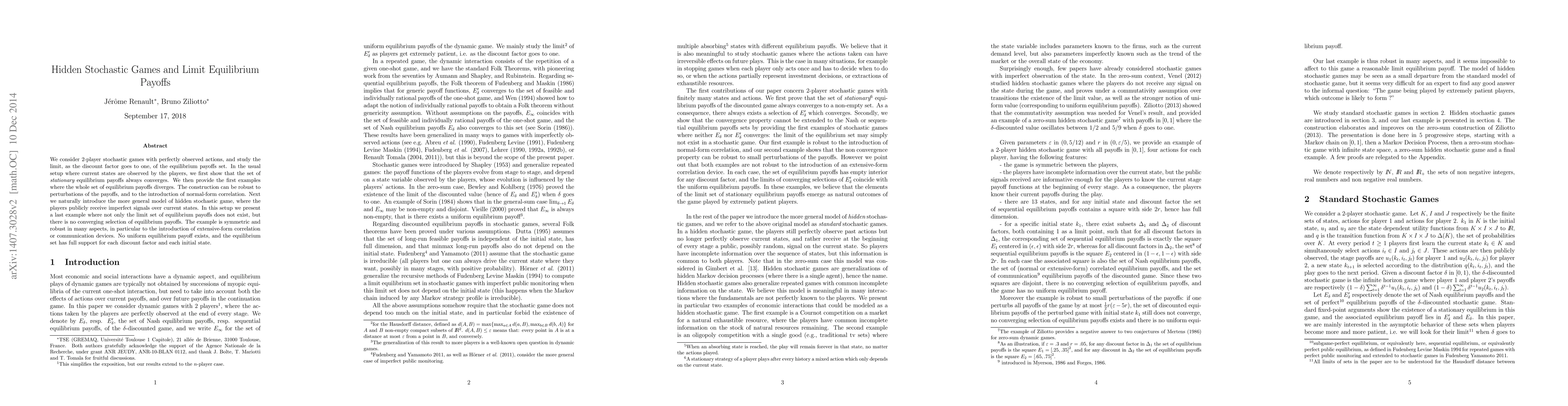 This paper examines the convergence of equilibrium payoffs in 2-player stochastic games, showing that in perfectly observable scenarios, the set of stationary equilibrium payoffs always converges. However, in hidden stochastic games with imperfect state signals, the paper presents examples where the limit set of equilibrium payoffs does not exist and no converging selection can be made, demonstrating robustness to various perturbations.