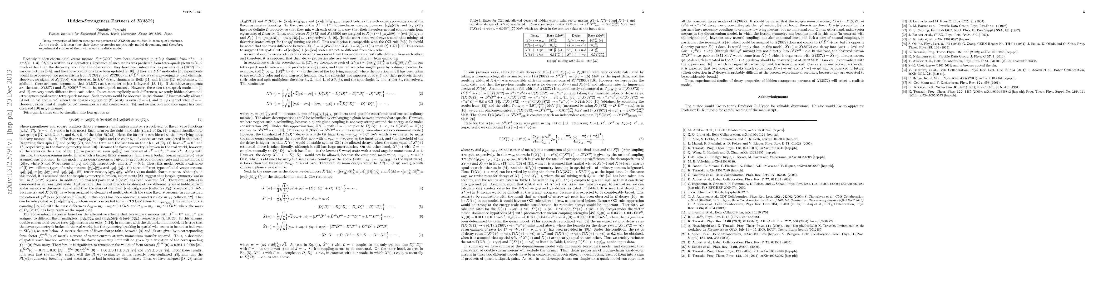Decay properties of hidden-strangeness partners of X(3872) are studied in tetra-quark pictures. As the results, it is seen that their decay properties are strongly model dependent, and therefore, experimental studies of them will select a realistic model.