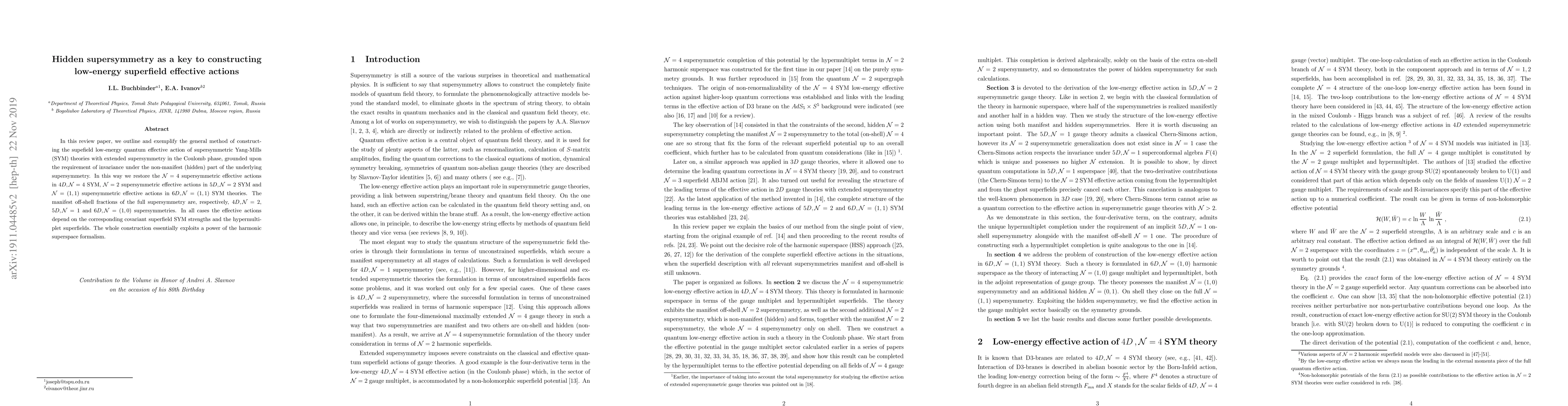 This paper reviews a method for constructing low-energy effective actions for supersymmetric Yang-Mills theories by leveraging hidden supersymmetry, thereby restoring extended ${\cal N}$-supersymmetry in various dimensions. The approach utilizes the harmonic superspace formalism to achieve these results.