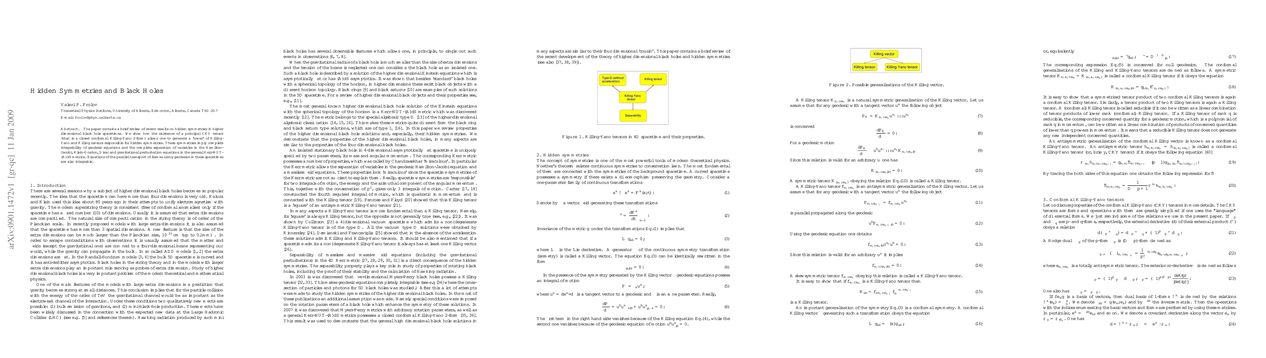 The paper contains a brief review of recent results on hidden symmetries in higher dimensional black hole spacetimes. We show how the existence of a principal CKY tensor (that is a closed conformal Killing-Yano 2-form) allows one to generate a `tower' of Killing-Yano and Killing tensors responsible for hidden symmetries. These symmetries imply complete integrability of geodesic equations and the complete separation of variables in the Hamilton-Jacobi, Klein-Gordon, Dirac and gravitational perturbation equations in the general Kerr-NUT-(A)dS metrics. Equations of the parallel transport of frames along geodesics in these spacetimes are also integrable.