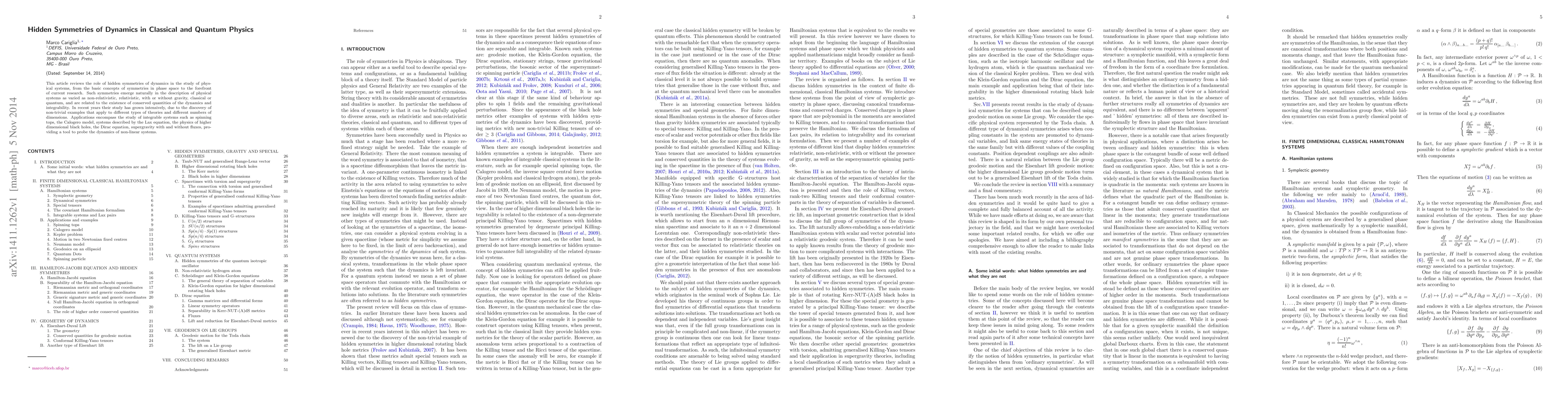 This article reviews the role of hidden symmetries of dynamics in the study of physical systems, from the basic concepts of symmetries in phase space to the forefront of current research. Such symmetries emerge naturally in the description of physical systems as varied as non-relativistic, relativistic, with or without gravity, classical or quantum, and are related to the existence of conserved quantities of the dynamics and integrability. In recent years their study has grown intensively, due to the discovery of non-trivial examples that apply to different types of theories and different numbers of dimensions. Applications encompass the study of integrable systems such as spinning tops, the Calogero model, systems described by the Lax equation, the physics of higher dimensional black holes, the Dirac equation, supergravity with and without fluxes, providing a tool to probe the dynamics of non-linear systems.