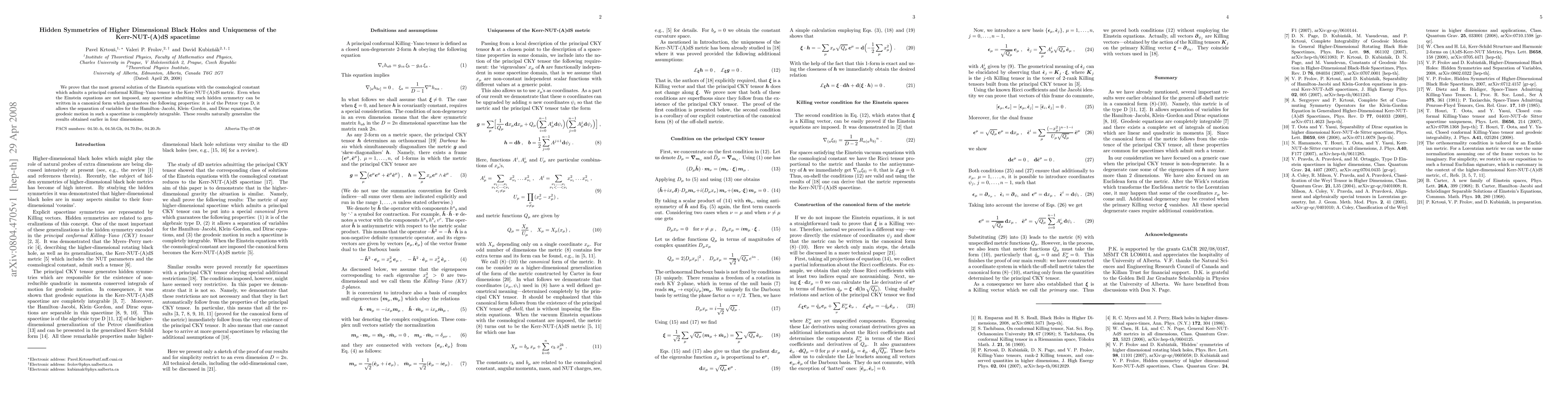 We prove that the most general solution of the Einstein equations with the cosmological constant which admits a principal conformal Killing-Yano tensor is the Kerr-NUT-(A)dS metric. Even when the Einstein equations are not imposed, any spacetime admitting such hidden symmetry can be written in a canonical form which guarantees the following properties: it is of the Petrov type D, it allows the separation of variables for the Hamilton-Jacobi, Klein-Gordon, and Dirac equations, the geodesic motion in such a spacetime is completely integrable. These results naturally generalize the results obtained earlier in four dimensions.
