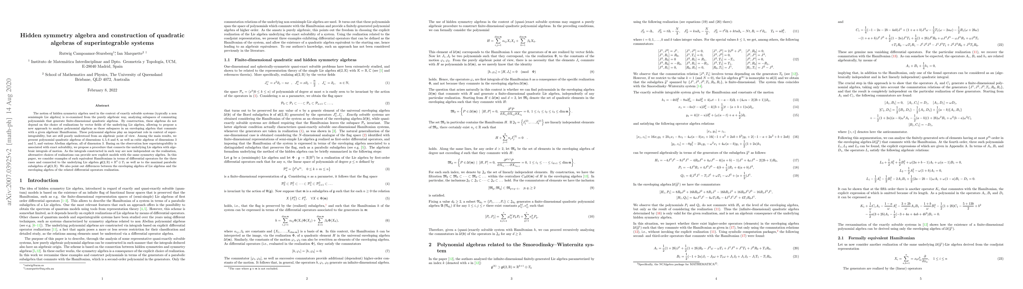 Summary: This paper explores the hidden symmetry algebra in superintegrable systems through an algebraic lens, focusing on subspaces of commuting polynomials forming finite-dimensional quadratic algebras. It proposes a method to analyze these algebras independent of specific vector field realizations, facilitating a broader understanding of polynomial algebras.
