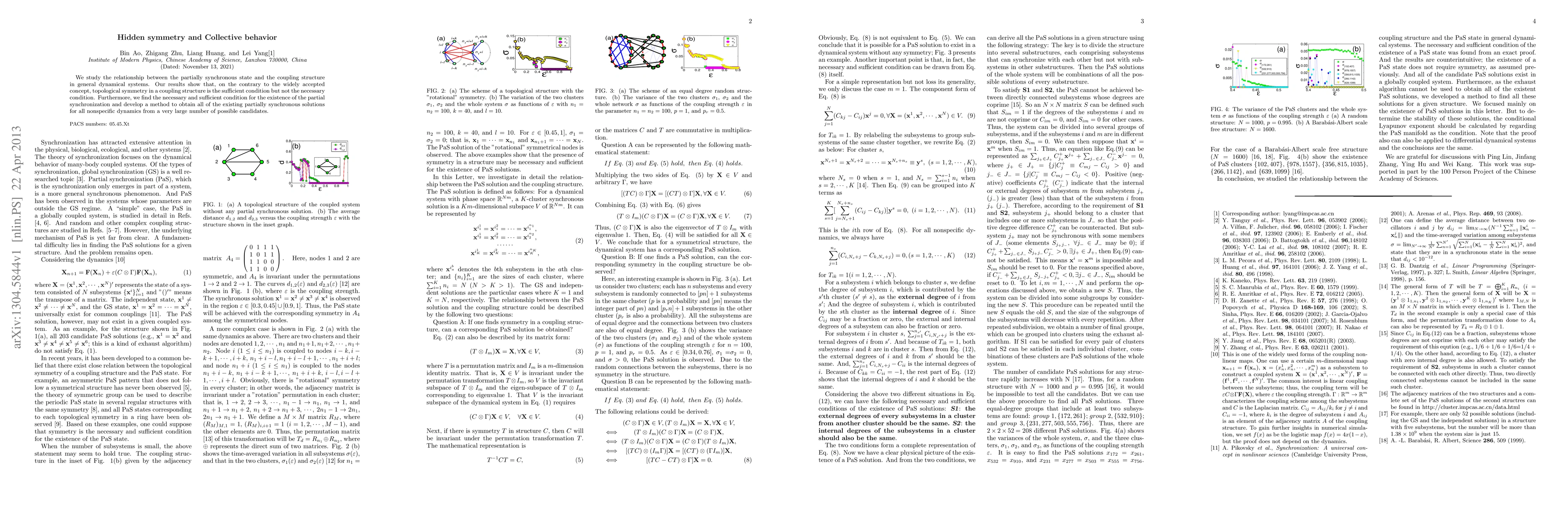 We study the relationship between the partially synchronous state and the coupling structure in general dynamical systems. Our results show that, on the contrary to the widely accepted concept, topological symmetry in a coupling structure is the sufficient condition but not the necessary condition. Furthermore, we find the necessary and sufficient condition for the existence of the partial synchronization and develop a method to obtain all of the existing partially synchronous solutions for all nonspecific dynamics from a very large number of possible candidates.