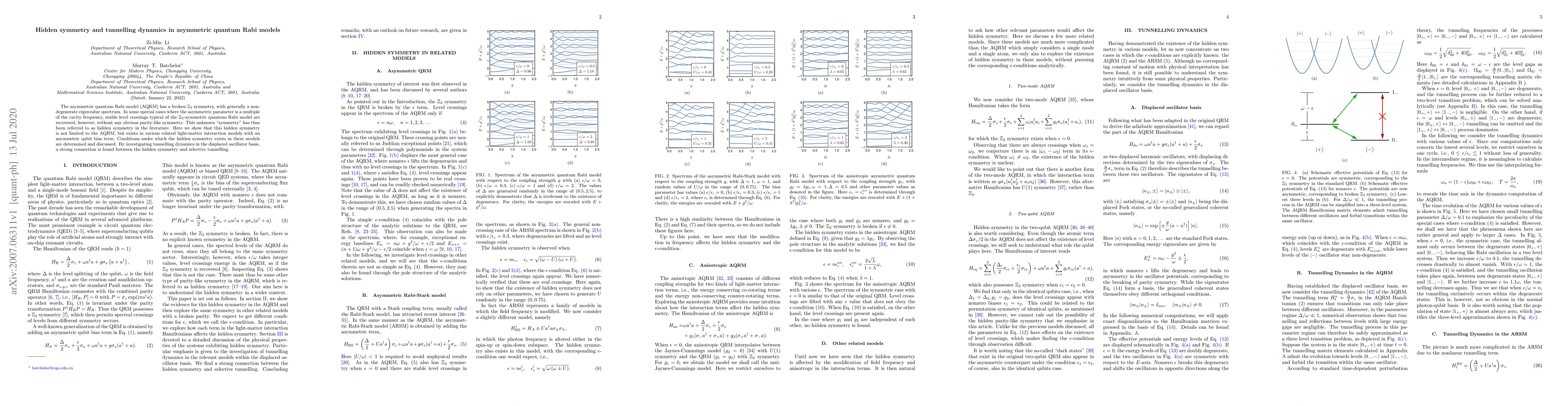Researchers discover a hidden symmetry in asymmetric quantum Rabi models that recovers stable level crossings without obvious parity-like symmetry. This 'hidden symmetry' is found to be connected to selective tunnelling dynamics.