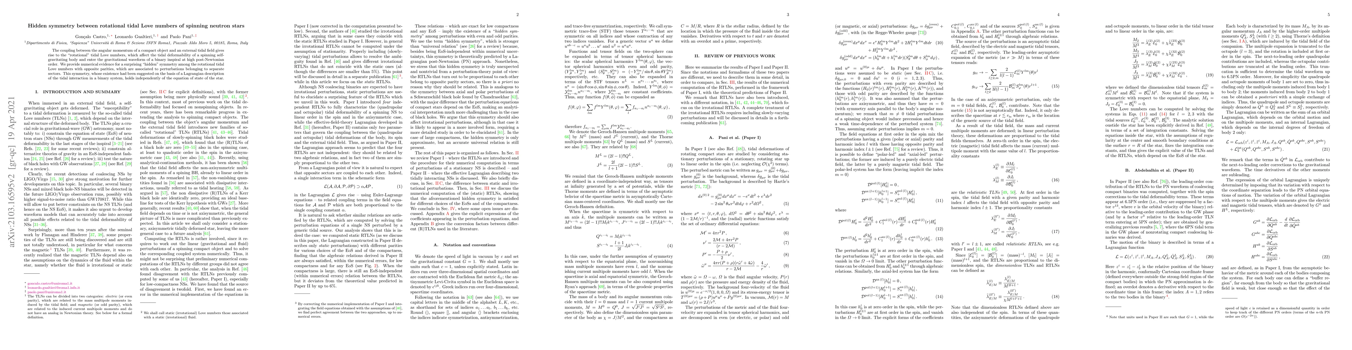 The paper reveals a hidden symmetry in the rotational tidal Love numbers of spinning neutron stars, showing that these numbers with opposite parities are equal, regardless of the star's equation of state. This symmetry, suggested by a Lagrangian description, impacts the tidal deformability and gravitational waveforms in binary inspirals.