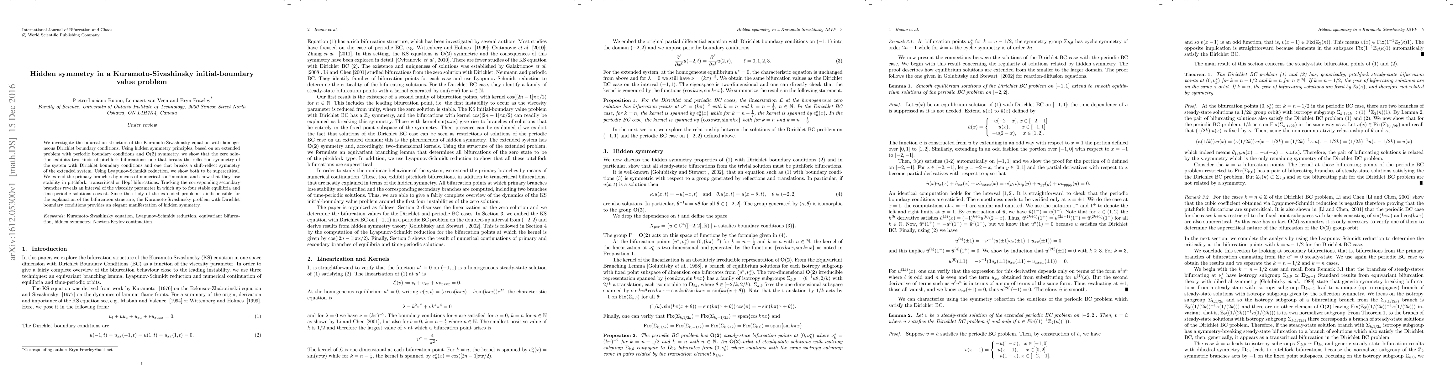This paper explores the bifurcation structure of the Kuramoto-Sivashinsky equation under Dirichlet boundary conditions, revealing hidden symmetries through an extended problem with periodic boundaries. It identifies two types of pitchfork bifurcations and demonstrates their supercritical nature, leading to the coexistence of stable equilibria and periodic solutions.