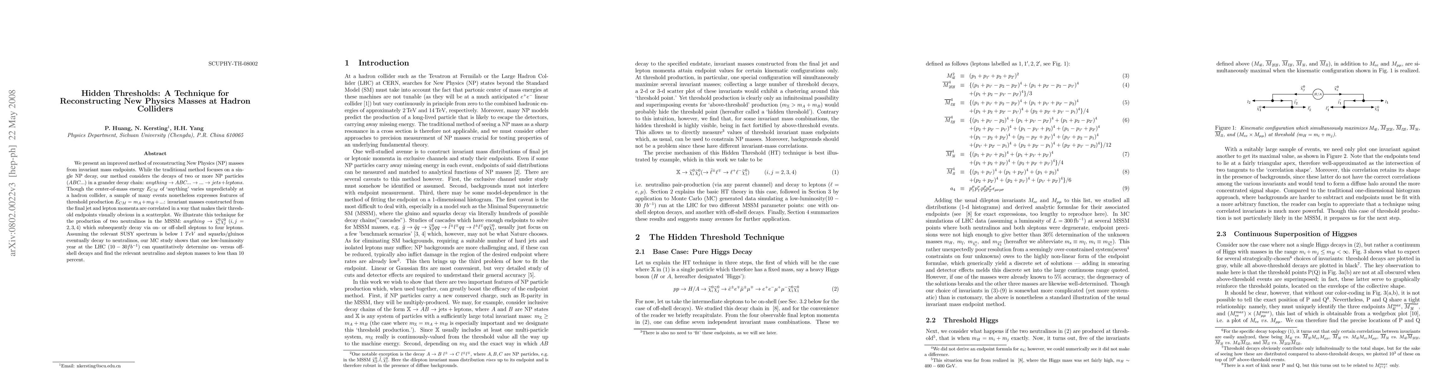 We present an improved method of reconstructing New Physics (NP) masses from invariant mass endpoints. While the traditional method focuses on a single NP decay, our method considers the decays of two or more NP particles ($ABC...$) in a grander decay chain: $ anything \to ABC... \to ... \to jets + leptons$. Though the center-of-mass energy $E_{CM}$ of `anything' varies unpredictably at a hadron collider, a sample of many events nonetheless expresses features of threshold production $E_{CM} = m_A + m_B + ...$: invariant masses constructed from the final jet and lepton momenta are correlated in a way that makes their threshold endpoints visually obvious in a scatterplot. We illustrate this technique for the production of two neutralinos in the MSSM: $anything \to \widetilde{\chi}_{i}^0 \widetilde{\chi}_{j}^0$ ($i,j=2,3,4$) which subsequently decay via on- or off-shell sleptons to four leptons. Assuming the relevant SUSY spectrum is below $1 TeV$ and squarks/gluinos eventually decay to neutralinos, our MC study shows that one low-luminosity year at the LHC ($10-30 fb^{-1}$) can quantitatively determine on- versus off-shell decays and find the relevant neutralino and slepton masses to less than 10 percent.