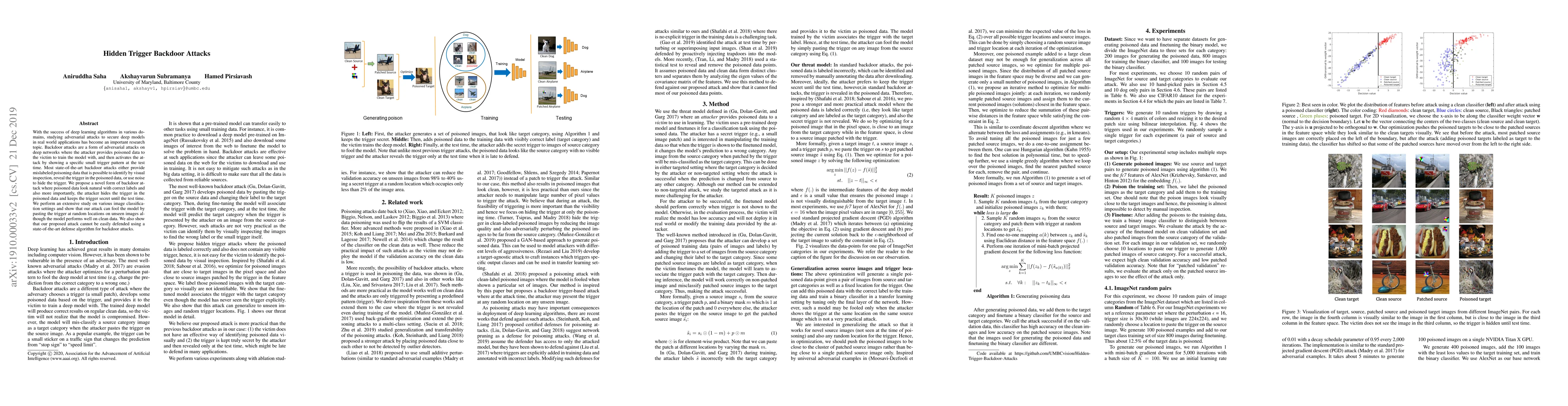 This paper introduces a novel hidden trigger backdoor attack on deep learning models, where poisoned data appear natural and the trigger is concealed until test time. The proposed attack successfully fools models by placing triggers in unseen images, demonstrating its effectiveness and resilience against existing defense mechanisms.
