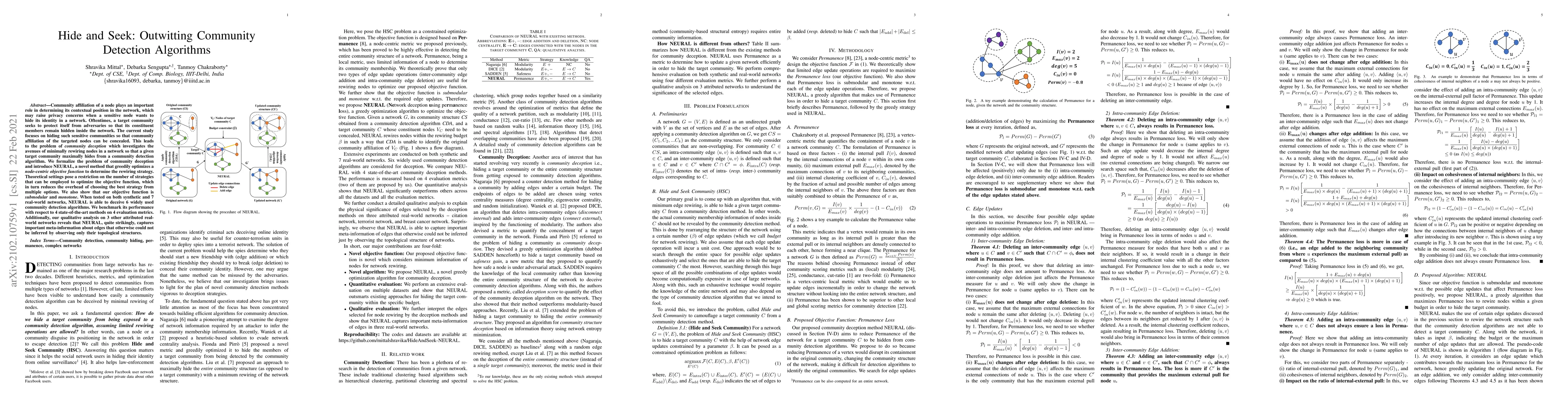This paper introduces NEURAL, a novel method for hiding sensitive communities in a network to deceive community detection algorithms by minimally rewiring nodes. NEURAL optimizes a submodular and monotone objective function to determine the best rewiring strategy, achieving superior performance against six detection algorithms on both synthetic and real-world networks.