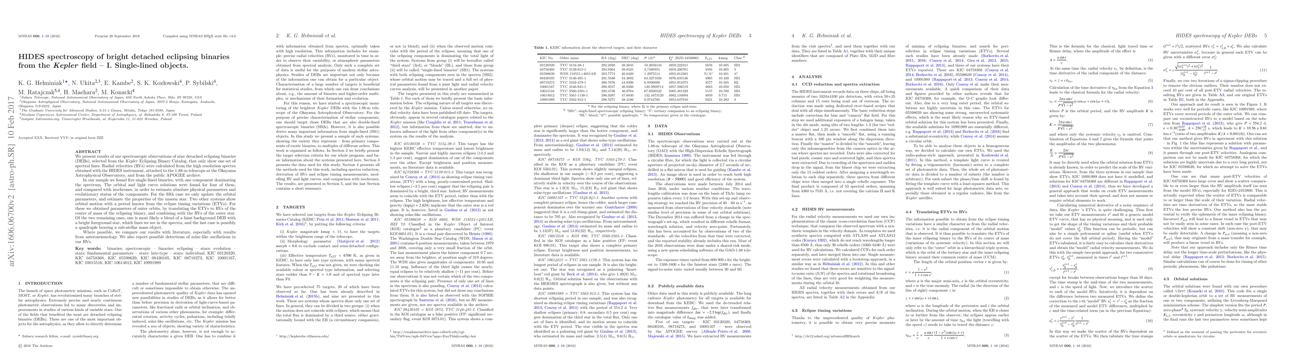 We present results of our spectroscopic observations of nine detached eclipsing binaries (DEBs), selected from the $Kepler$ Eclipsing Binary Catalog, that only show one set of spectral lines. Radial velocities (RVs) were calculated from the high resolution spectra obtained with the HIDES instrument, attached to the 1.88-m telescope at the Okayama Astrophysical Observatory, and from the public APOGEE archive. In our sample we found five single-lined binaries, with one component dominating the spectrum. The orbital and light curve solutions were found for four of them, and compared with isochrones, in order to estimate absolute physical parameters and evolutionary status of the components. For the fifth case we only update the orbital parameters, and estimate the properties of the unseen star. Two other systems show orbital motion with a period known from the eclipse timing variations (ETVs). For these we obtained parameters of outer orbits, by translating the ETVs to RVs of the centre of mass of the eclipsing binary, and combining with the RVs of the outer star. Of the two remaining ones, one is most likely a blend of a faint background DEB with a bright foreground star, which lines we see in the spectra, and the last case is possibly a quadruple bearing a sub-stellar mass object. Where possible, we compare our results with literature, especially with results from asteroseismology. We also report possible detections of solar-like oscillations in our RVs.