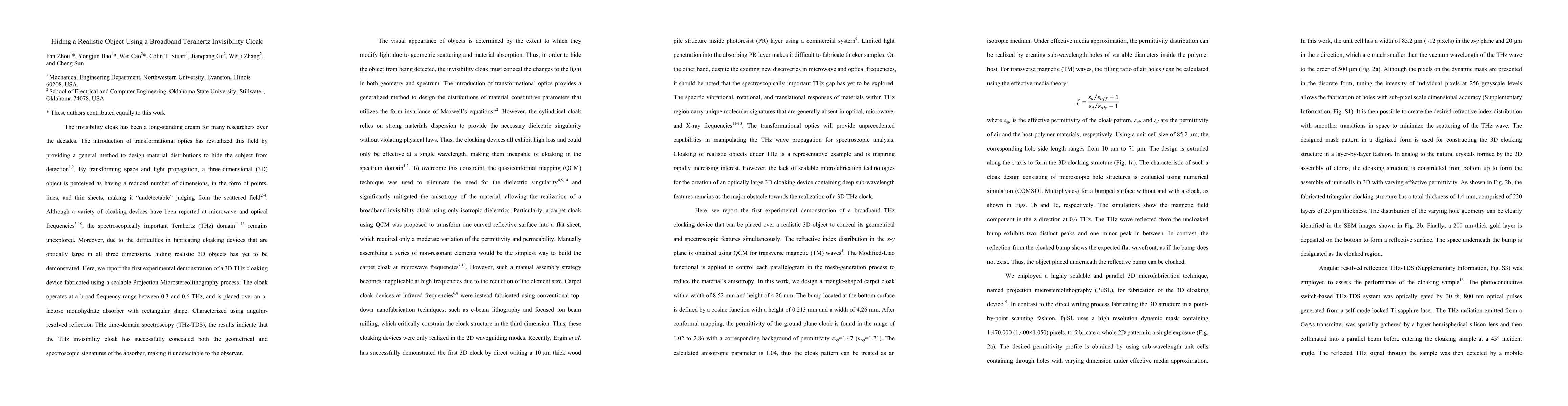 Researchers have successfully demonstrated a 3D Terahertz invisibility cloak that conceals both geometric and spectroscopic signatures of an object, marking a major breakthrough in the field of transformational optics.