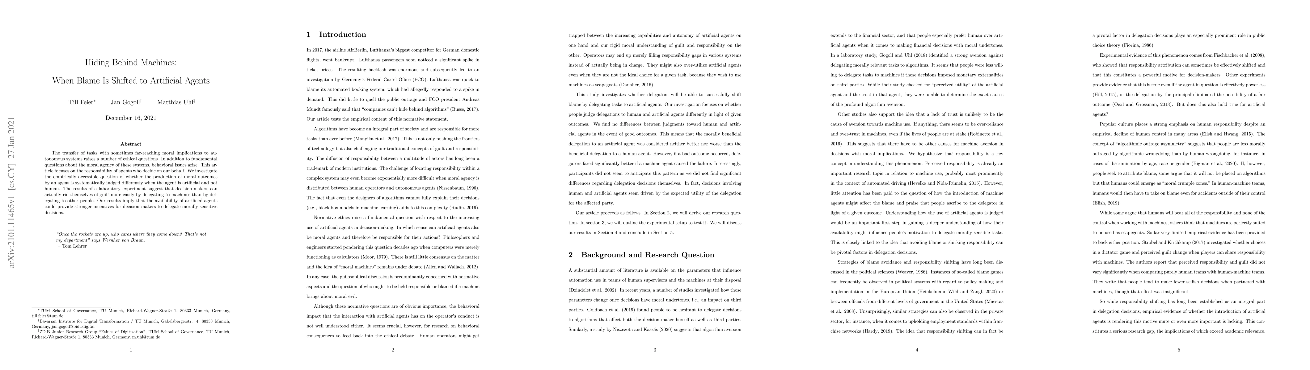 The study found that people feel less guilty and are more willing to delegate morally sensitive decisions to machines rather than humans, which could influence how autonomous systems are used in morally important roles. An experiment demonstrated that artificial agents can shift responsibility away from decision-makers, raising ethical concerns about accountability.