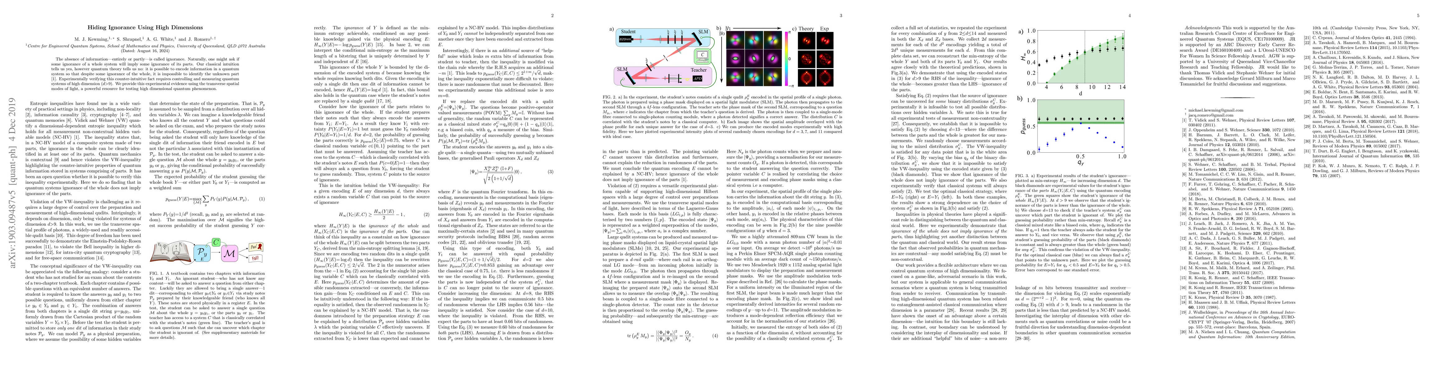 The absence of information -- entirely or partly -- is called ignorance. Naturally, one might ask if some ignorance of a whole system will imply some ignorance of its parts. Our classical intuition tells us yes, however quantum theory tells us no: it is possible to encode information in a quantum system so that despite some ignorance of the whole, it is impossible to identify the unknown part arXiv:1011.6448. Experimentally verifying this counter-intuitive fact requires controlling and measuring quantum systems of high dimension $(d {>} 9)$. We provide this experimental evidence using the transverse spatial modes of light, a powerful resource for testing high dimensional quantum phenomenon.